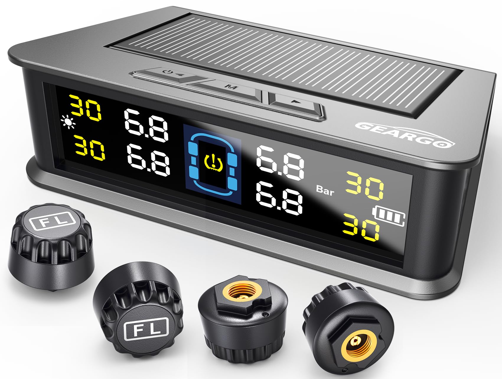 GEARGO Sistema de monitoreo de presión de neumáticos RV – Sistema de monitor de presión de neumáticos con cargador solar, RV TPMS