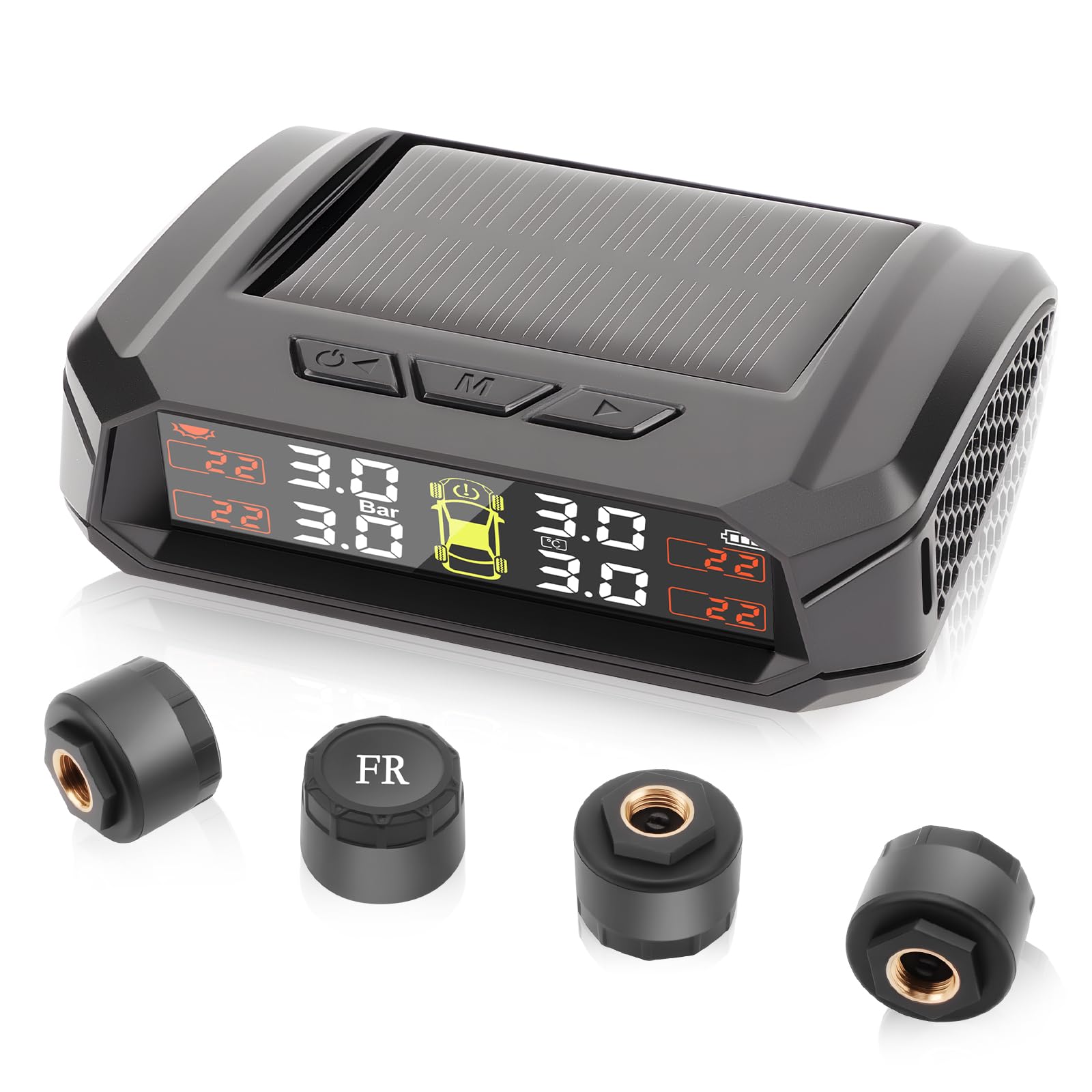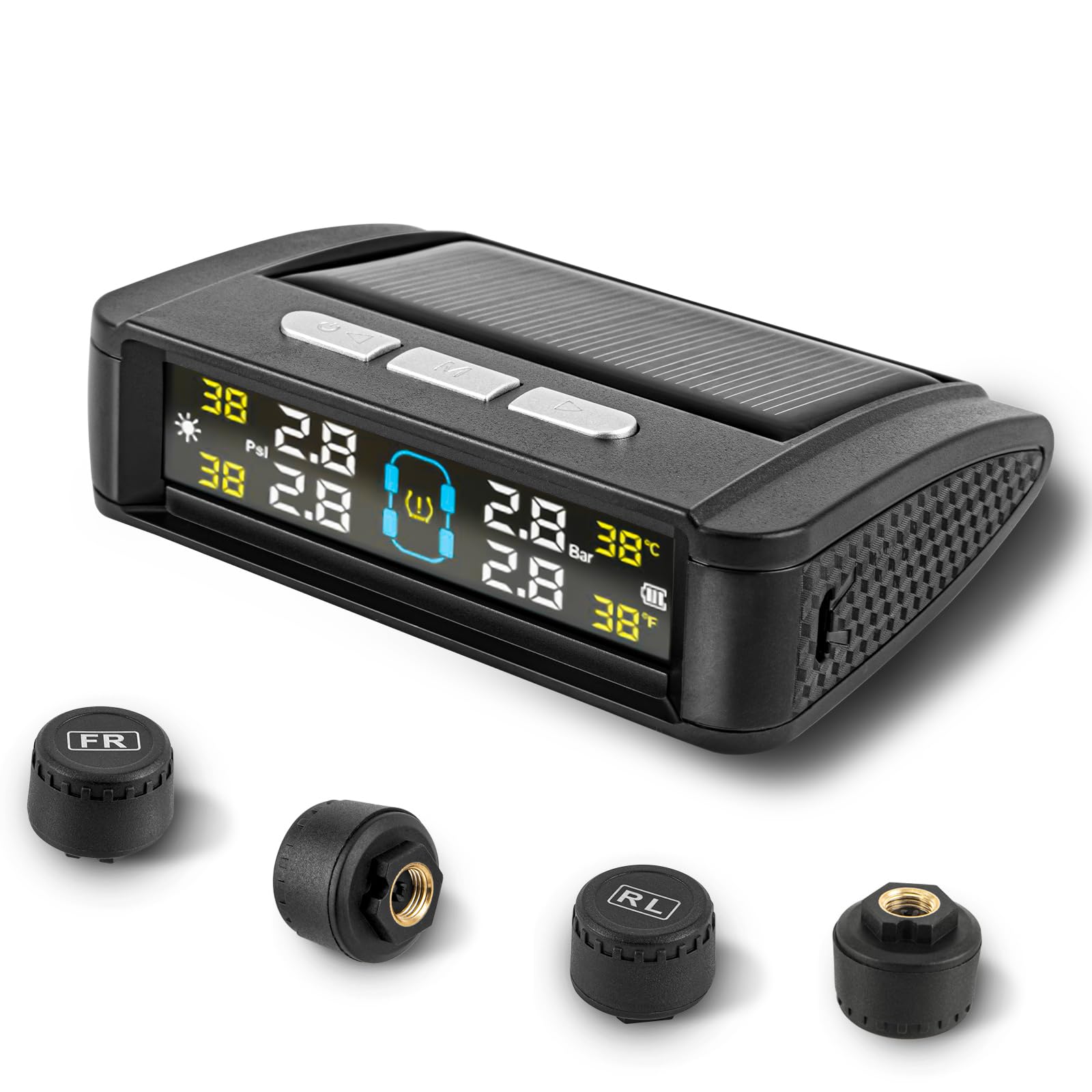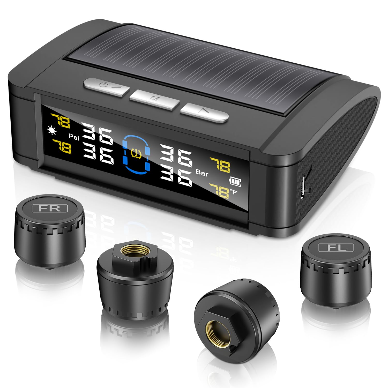SEACOT Solar TPMS Sistema de monitoreo de presión de neumáticos, edición profesional (0-87 PSI), 4 sensores, carga solar y USB, pa