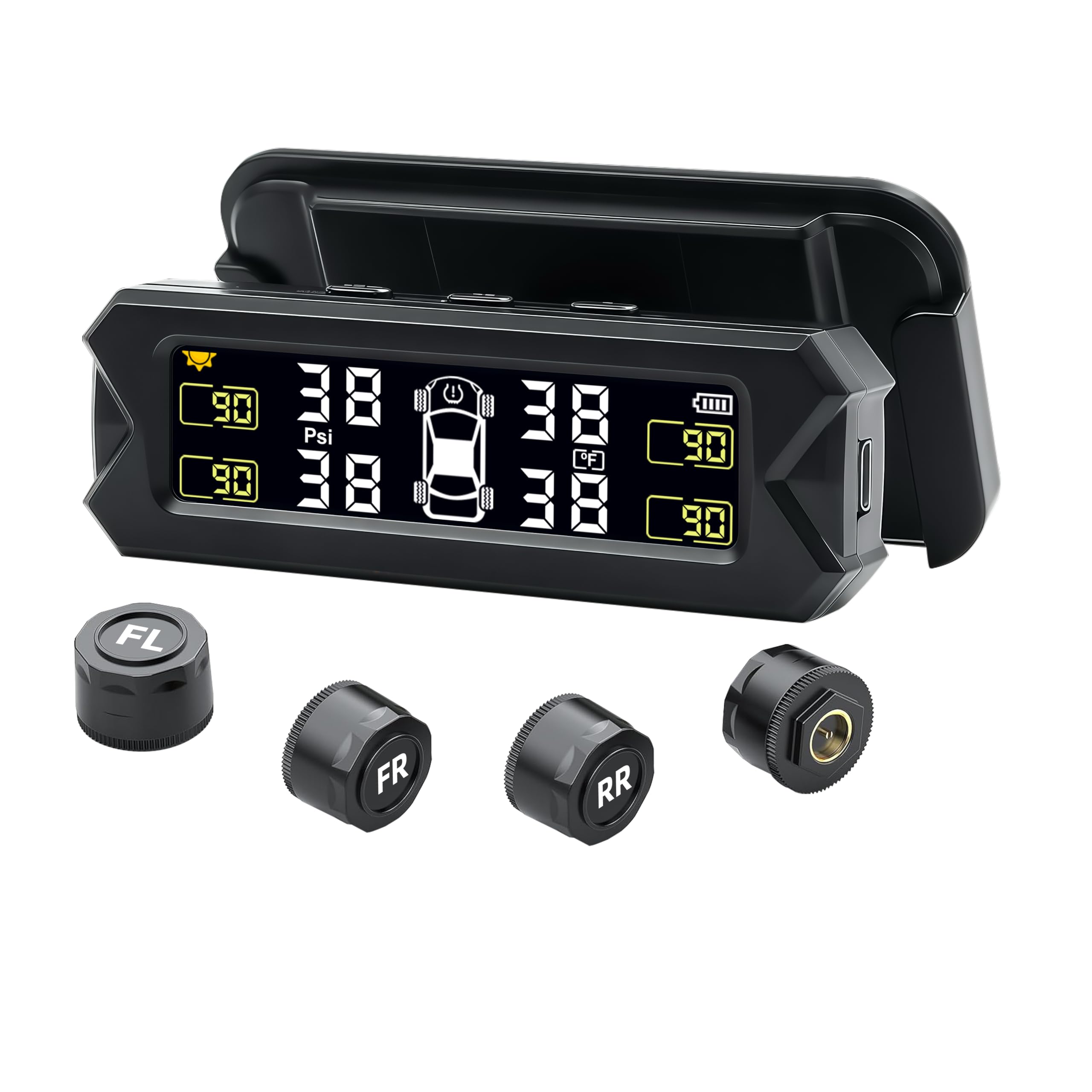 Sistema de monitoreo de presión de neumáticos TPMS solar inalámbrico, sistema de monitor de presión de neumáticos con 4 sensores e