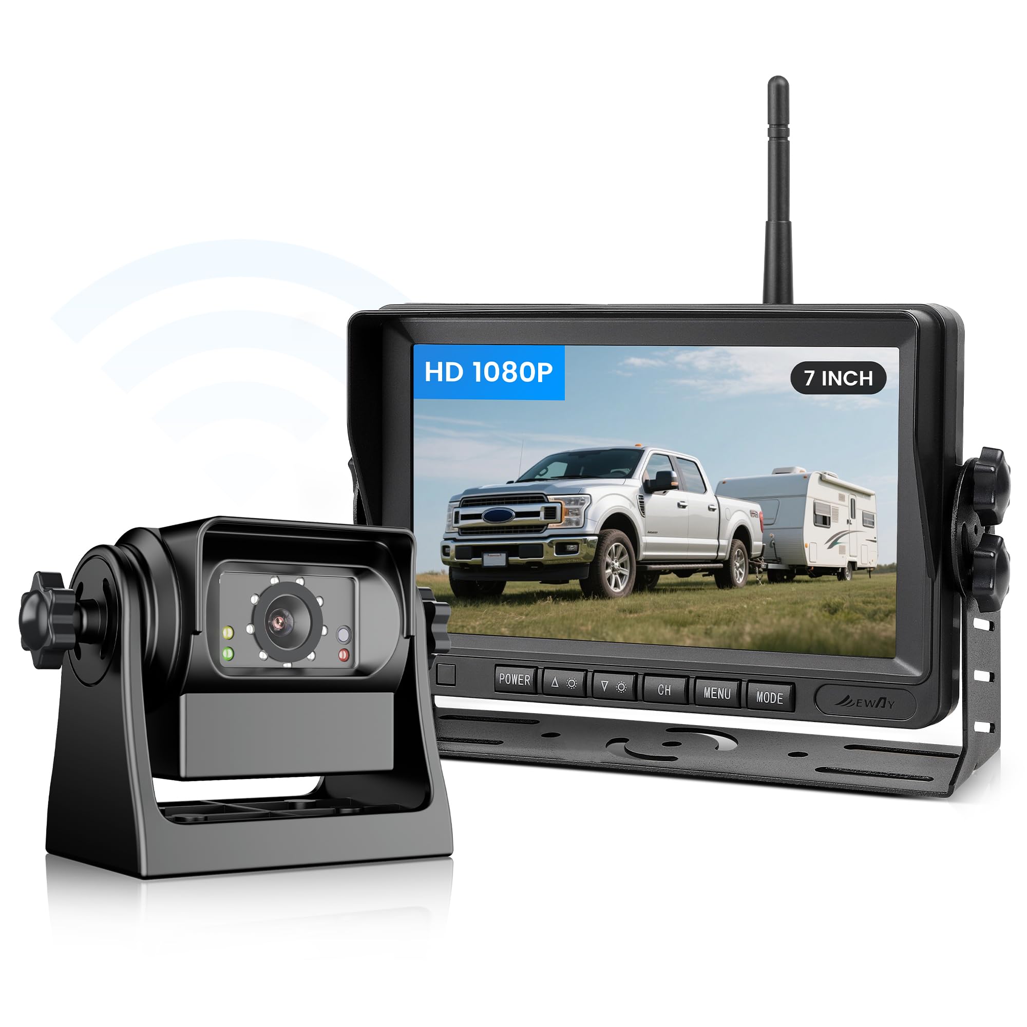 YIMU Cámara de respaldo inalámbrica magnética solar para remolque de camión, DVR portátil de 7 pulgadas, fácil instalación de 2 mi