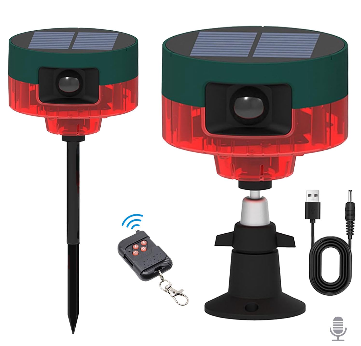 Qualirey 2 unids alarma solar con sensor de movimiento al aire libre con estaca animal disuasorio sensor de ladridos de perro 13 s