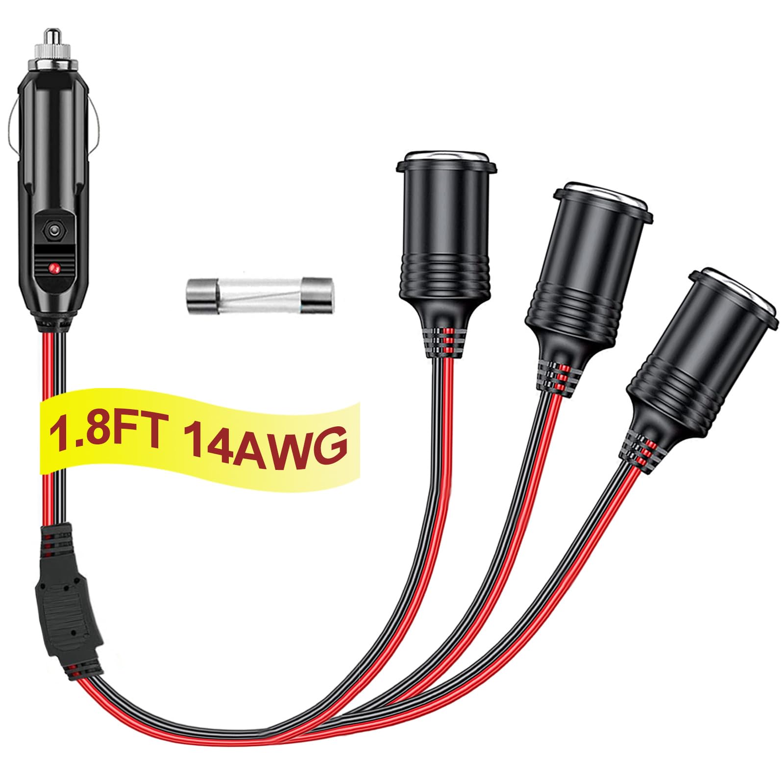 Divisor de enchufe de encendedor de cigarrillos de 12 V, 3 tomas de 1.8 pies – 1 a 3 para encendedor de cigarrillos de coche, adap