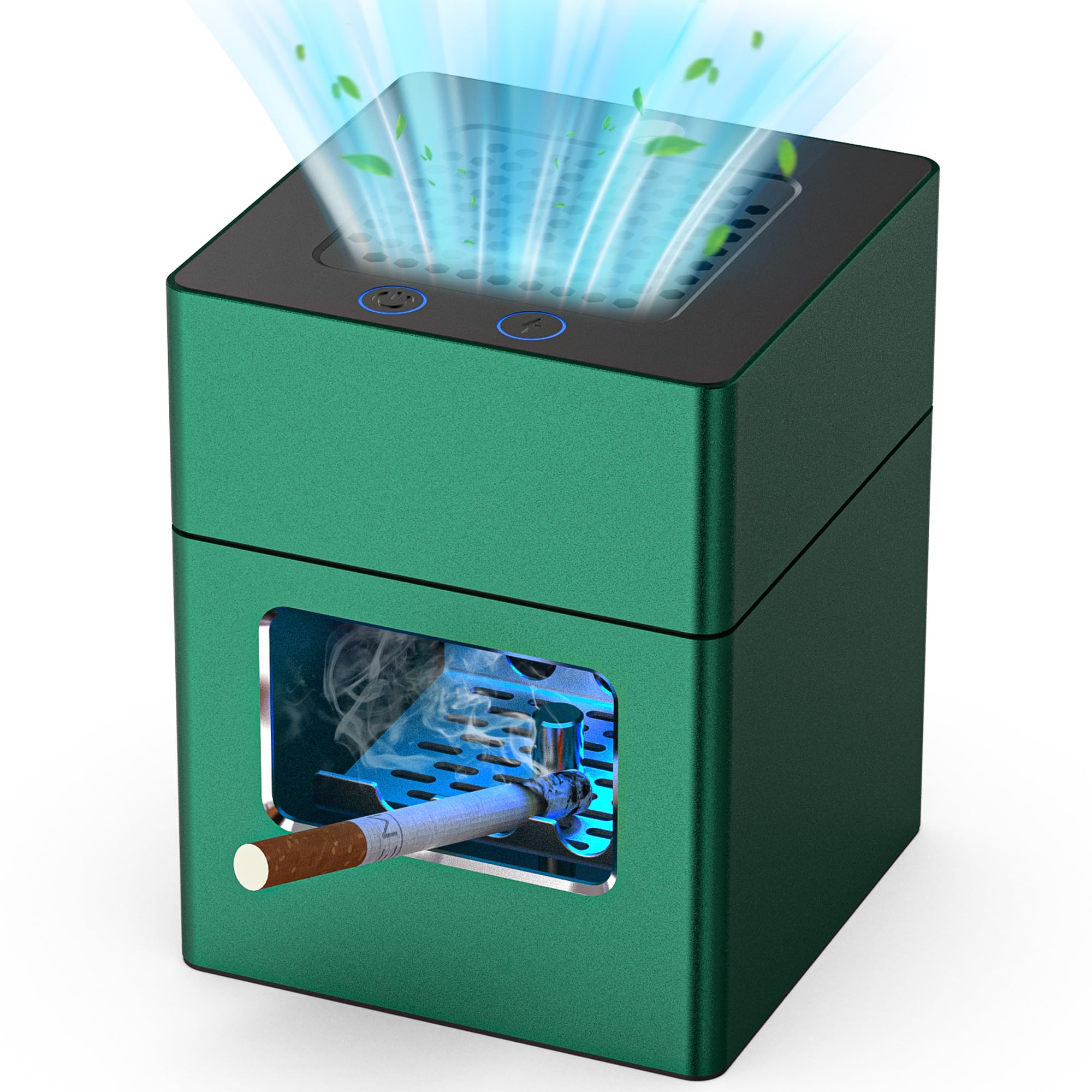 Green Air – Cenicero inteligente sin humo con encendedor, filtro HEPA recargable por USB, removedor de humo para el hogar, dormito