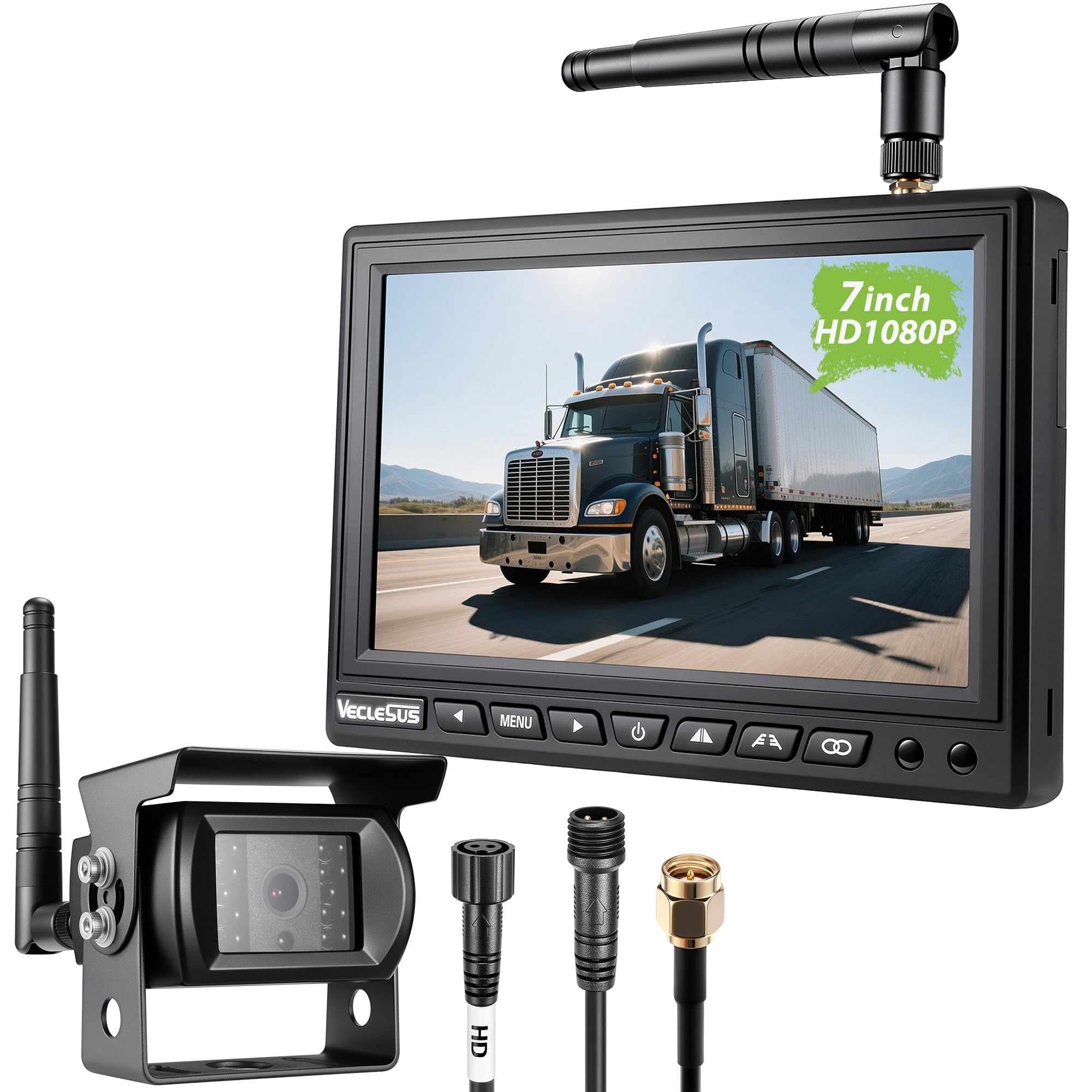 Cámara de respaldo inalámbrica para camiones VMW7 de alta definición 1080P 7 pulgadas, sistema de monitor IPS, transmisión estable