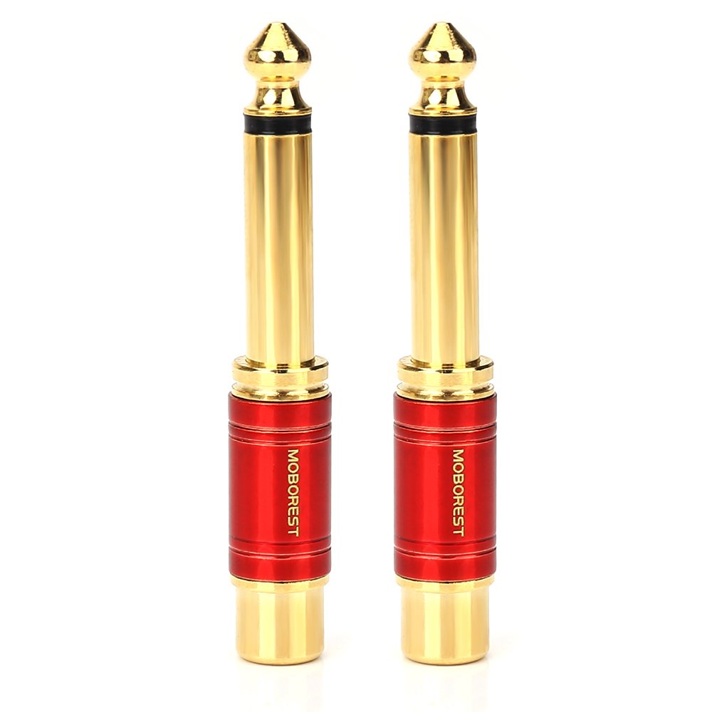 MOBOREST Adaptador de cobre puro hembra de 1/4 de pulgada a RCA, conector TS mono de 0.250 in macho de 1/4 pulgadas a RCA hembra a