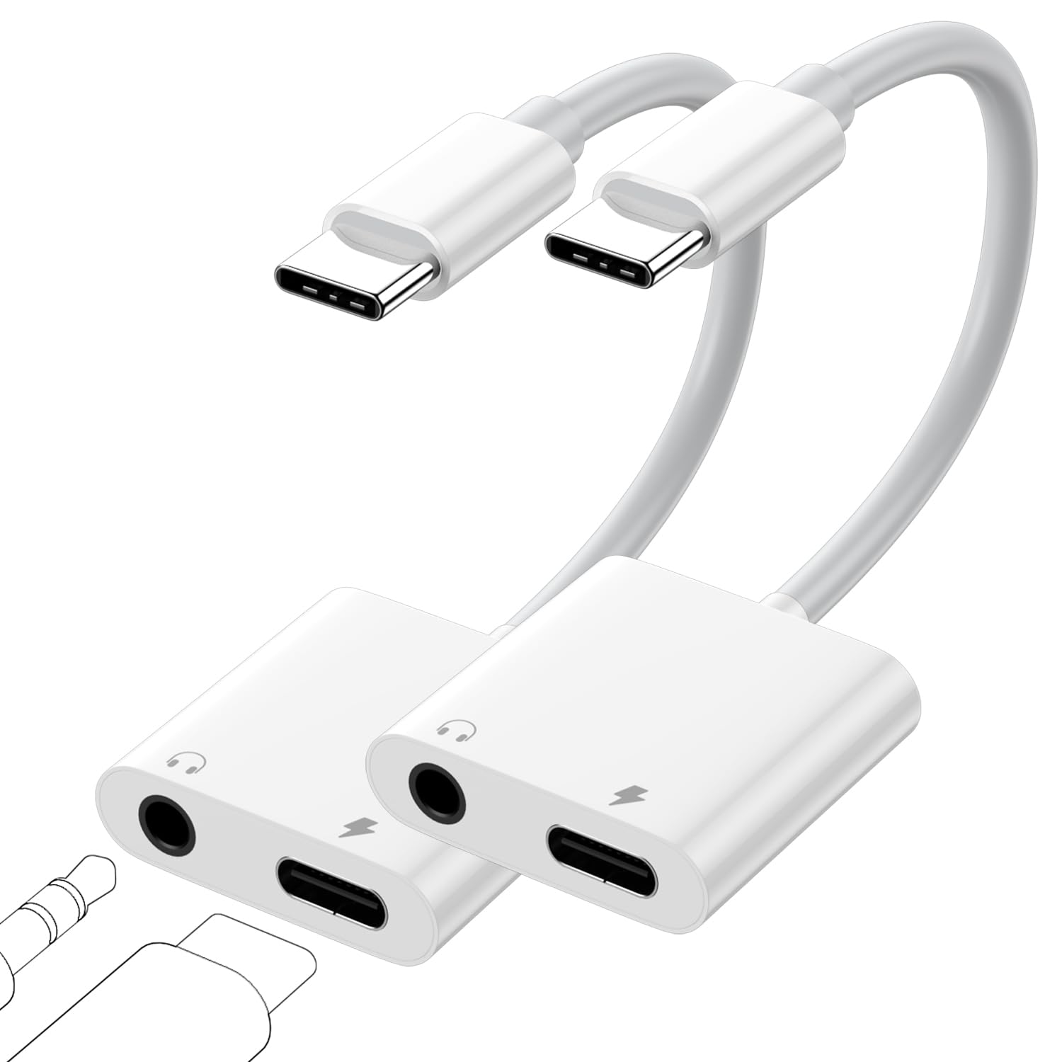2-Pack USB c to 3.5mm Headphone and Charger Adapter, 2-in-1 USB C to Aux Audio Jack Hi-Res DAC and Fast Charging Dongle Cable for