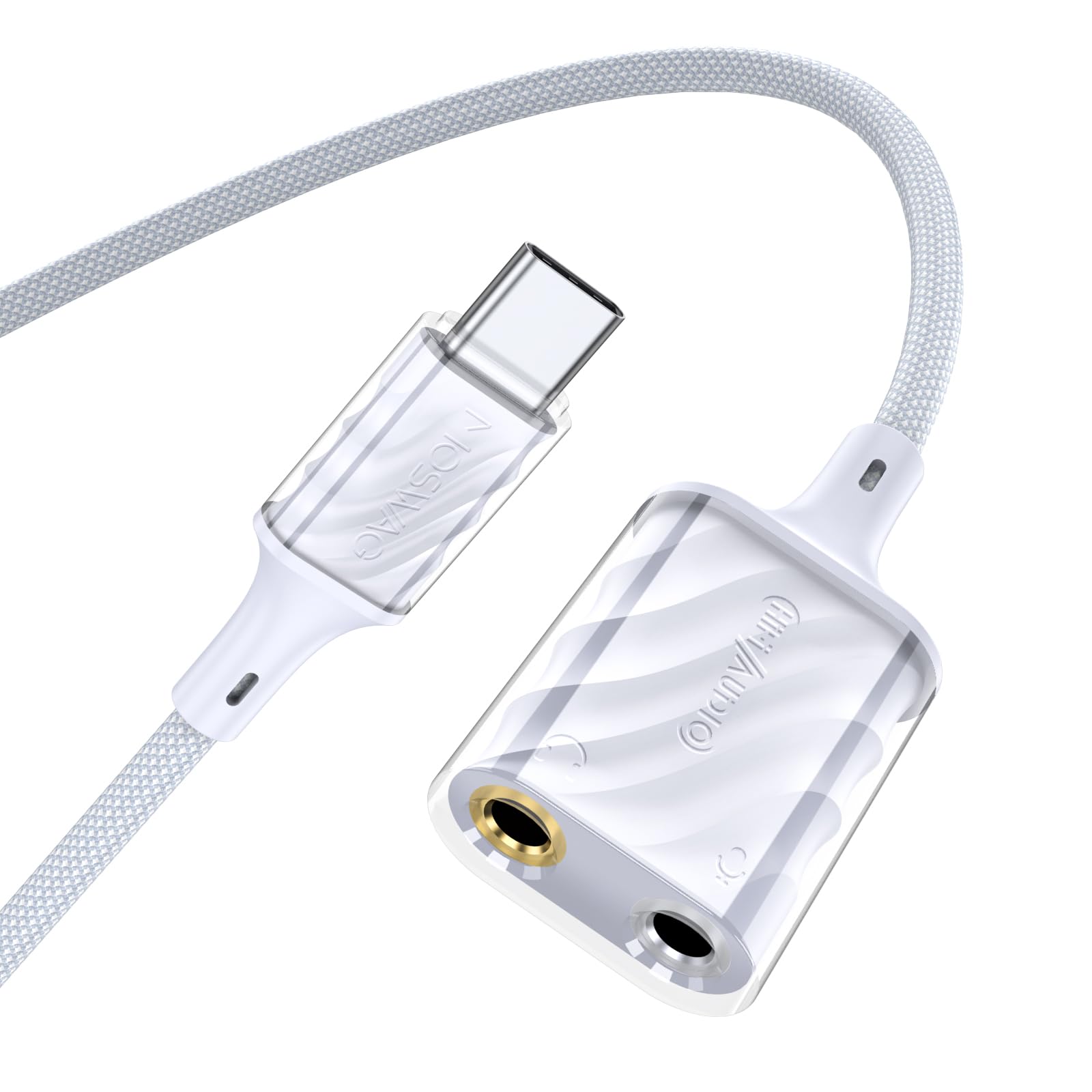 MOSWAG Divisor de micrófono para auriculares USB C, adaptador de auriculares dual tipo C, USB C a cable estéreo de audio para auri