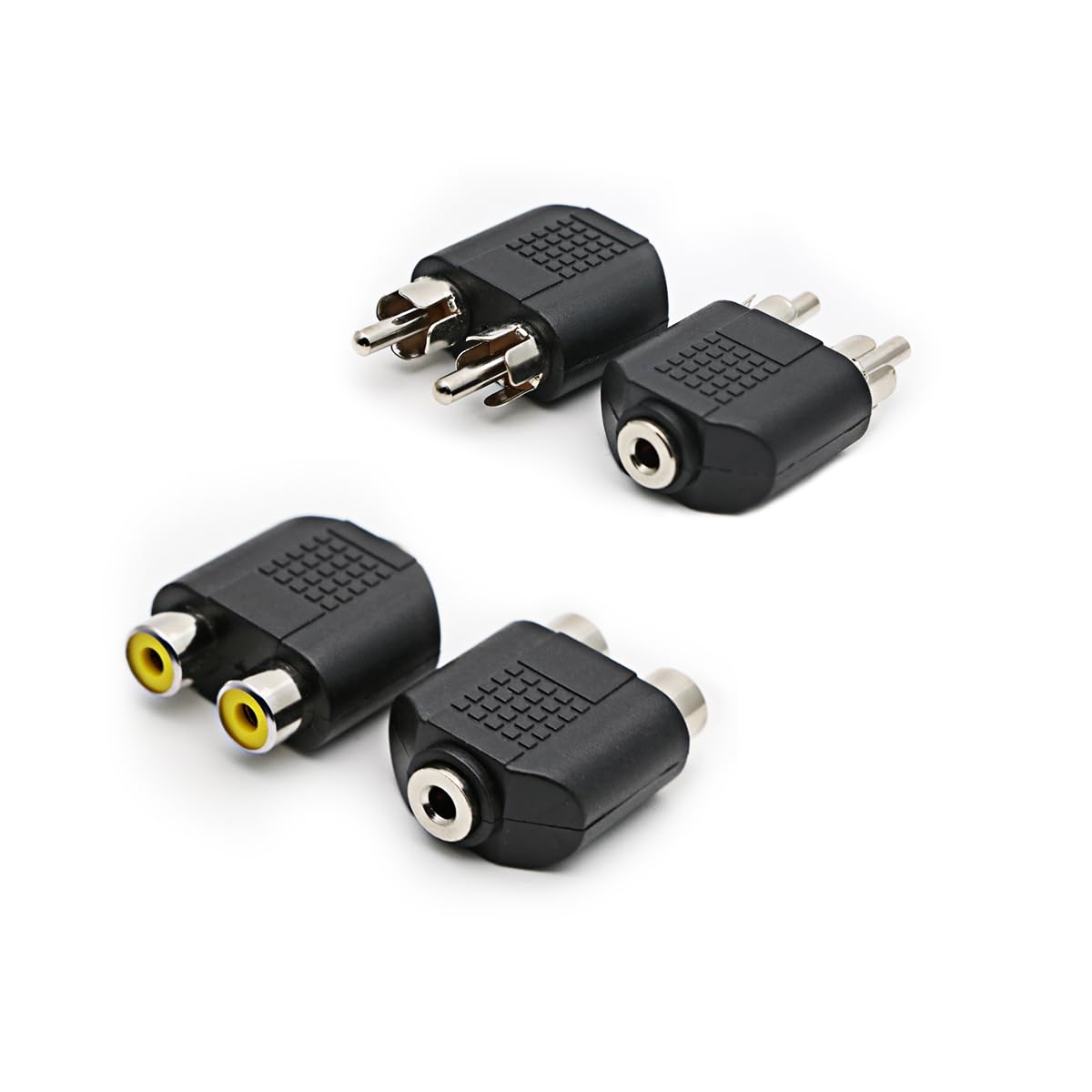Adaptador de audio de 0.138 in a 2 RCA, chapado en níquel, 2 RCA macho a conector estéreo hembra de 0.138 in, paquete de 4
