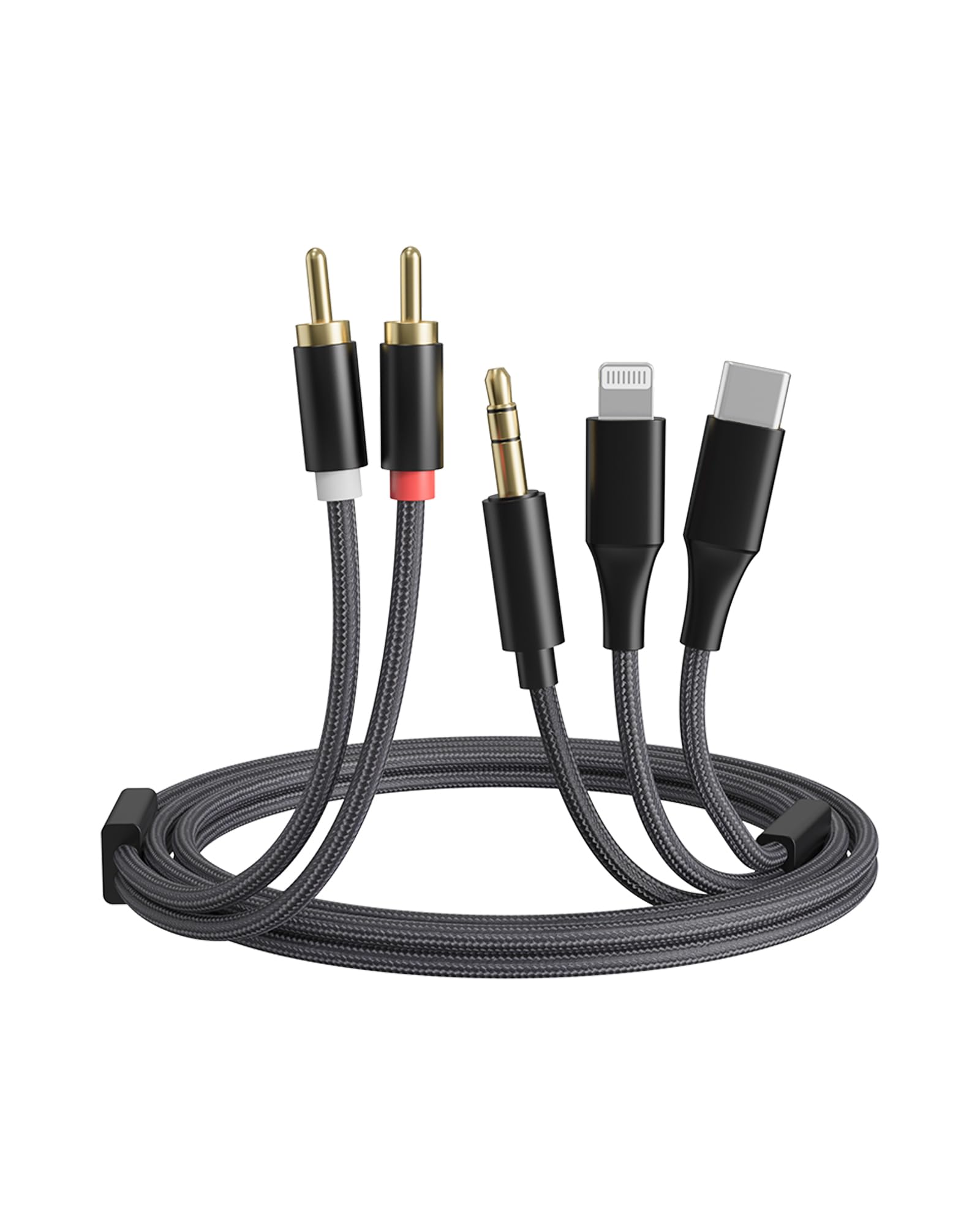 Cable de audio RCA 3 en 1: Lightning/USB C/0.138 in a 2 RCA, compatible con iPhone, Android, cine en casa, estéreo de automóvil, a