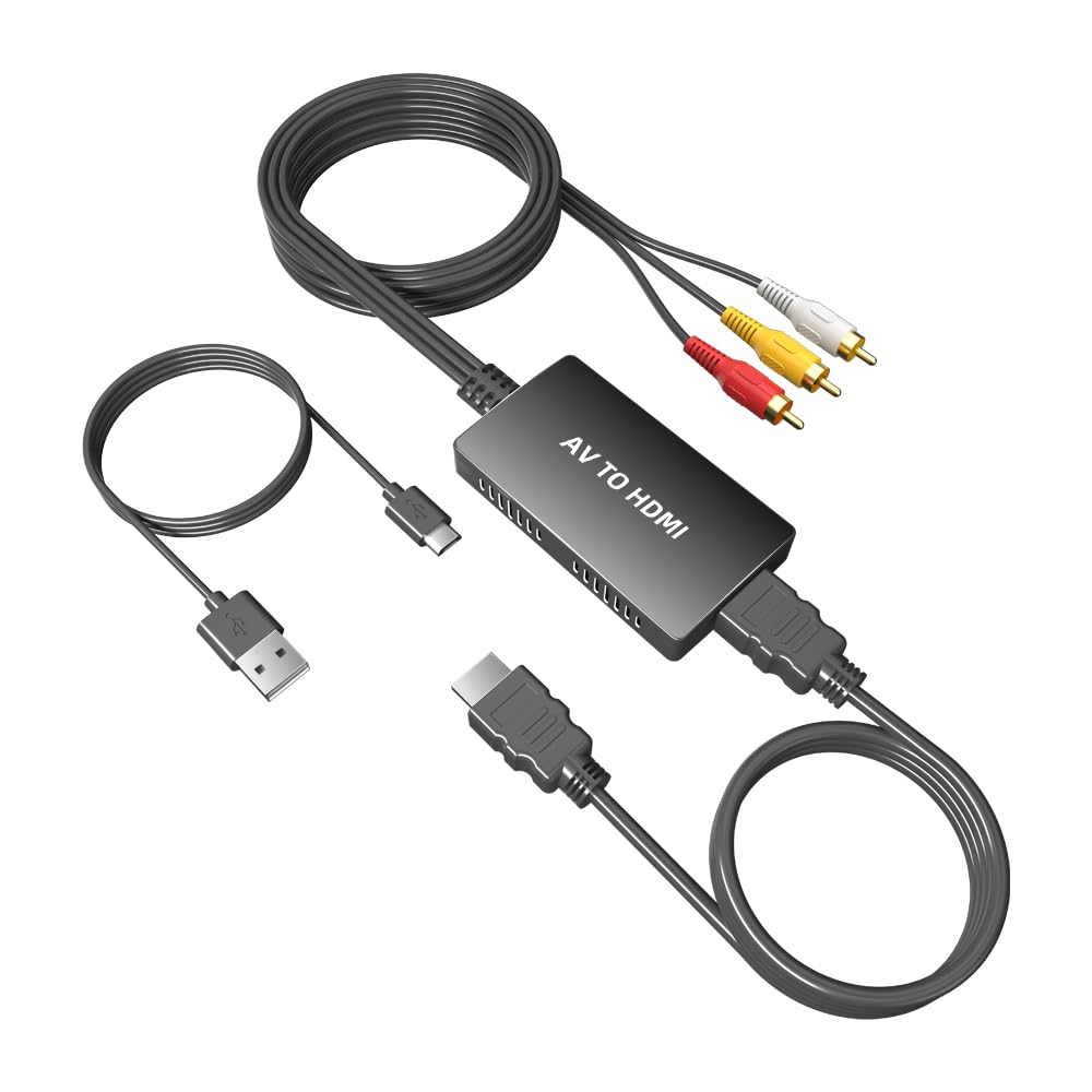 Dingsun Convertidor RCA a HDMI, adaptador AV a HDMI, convertidor de audio compuesto/CVBS/video compatible 1080P/720P para HD TV/pa