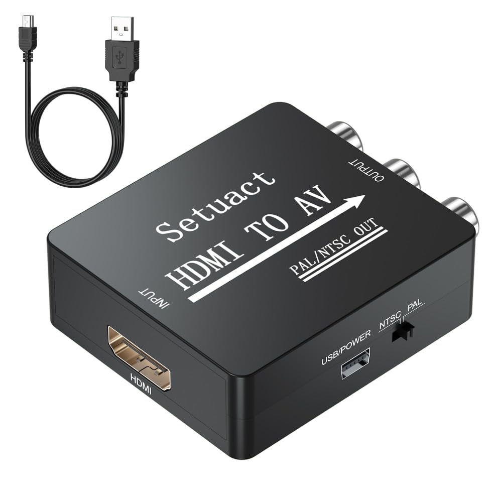 HDMI to AV Converter, HDMI to RCA Converter, Supports PAL/NTSC for Apple TV, Roku, Fire Stick, Blu-ray, DVD Player, Older TV, Proj
