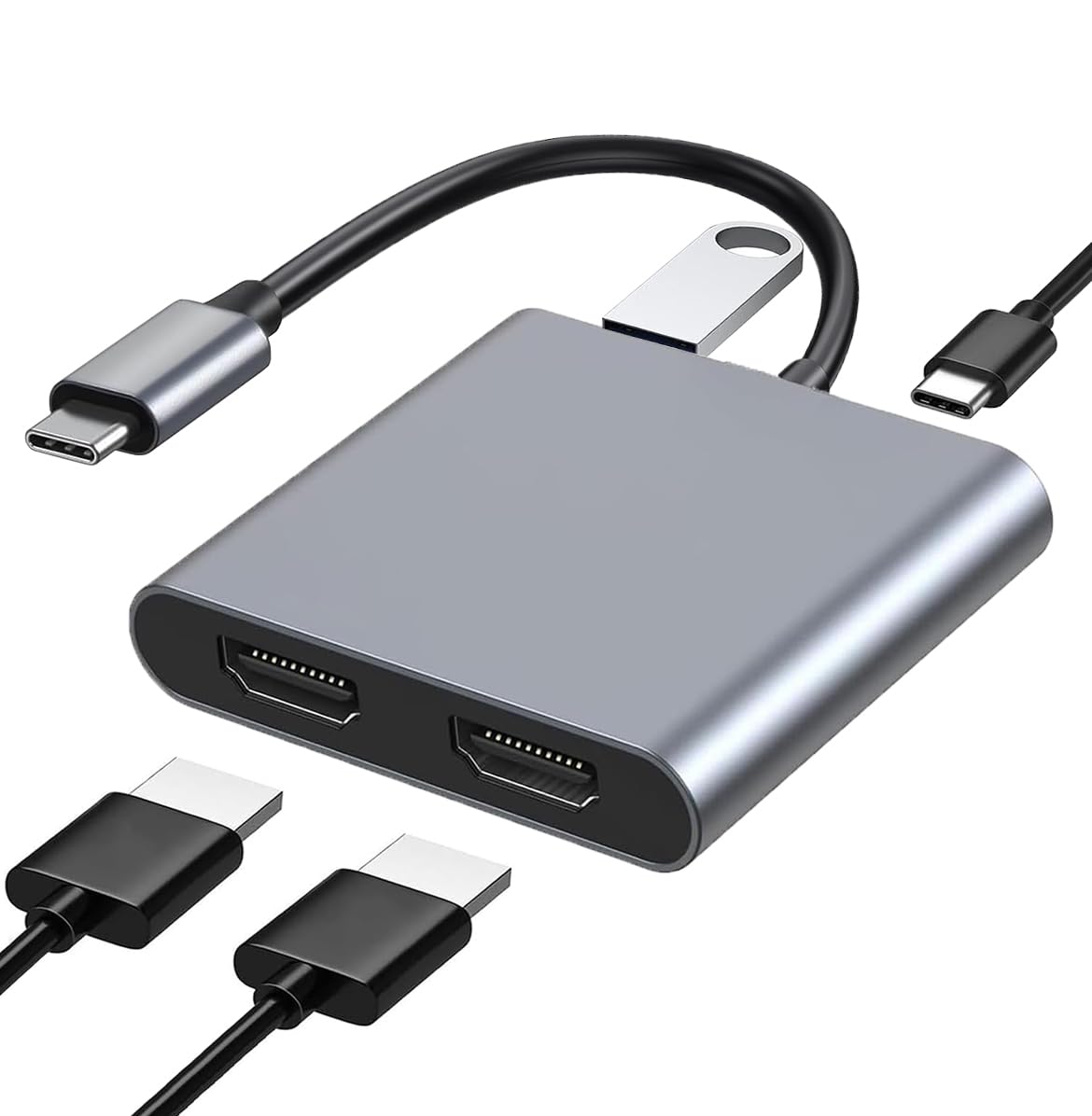 Adaptador USB C a HDMI dual 4 en 1, adaptador multipuerto tipo C con 2 puertos HDMI 4K, USB 3.0, PD 100W, divisor tipo C a 2 HD, a