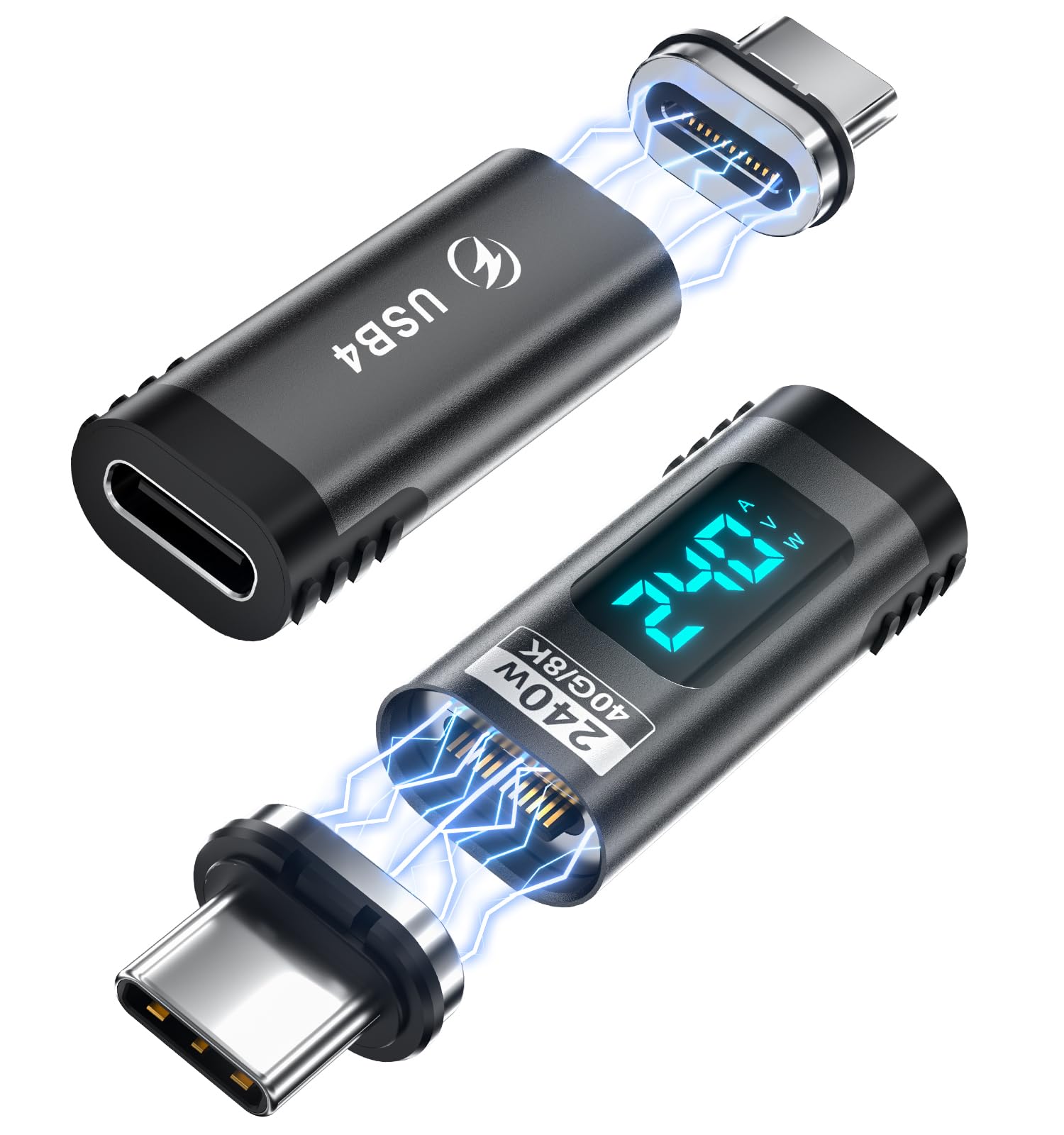 Adaptador magnético USB C con pantalla digital de 240 W, 2 unidades, probador de medidor de potencia USB C recto de 24 pines, comp