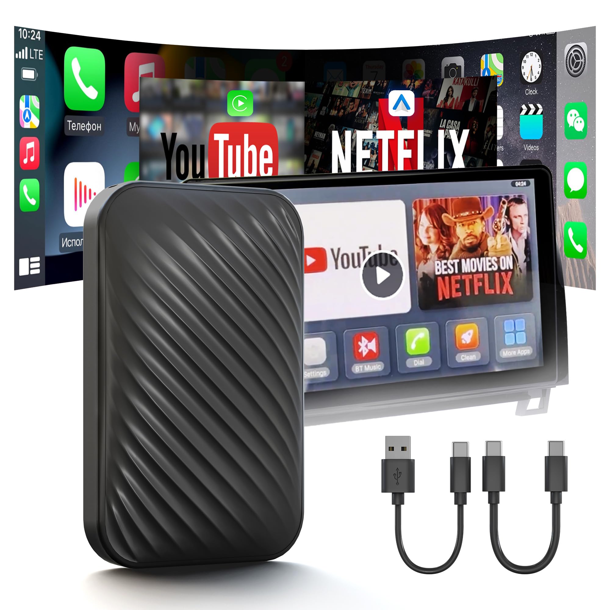 Adaptador inalámbrico CarPlay 2025, Apple CarPlay y adaptador inalámbrico Android Auto, caja de video mágica compatible con Netfli