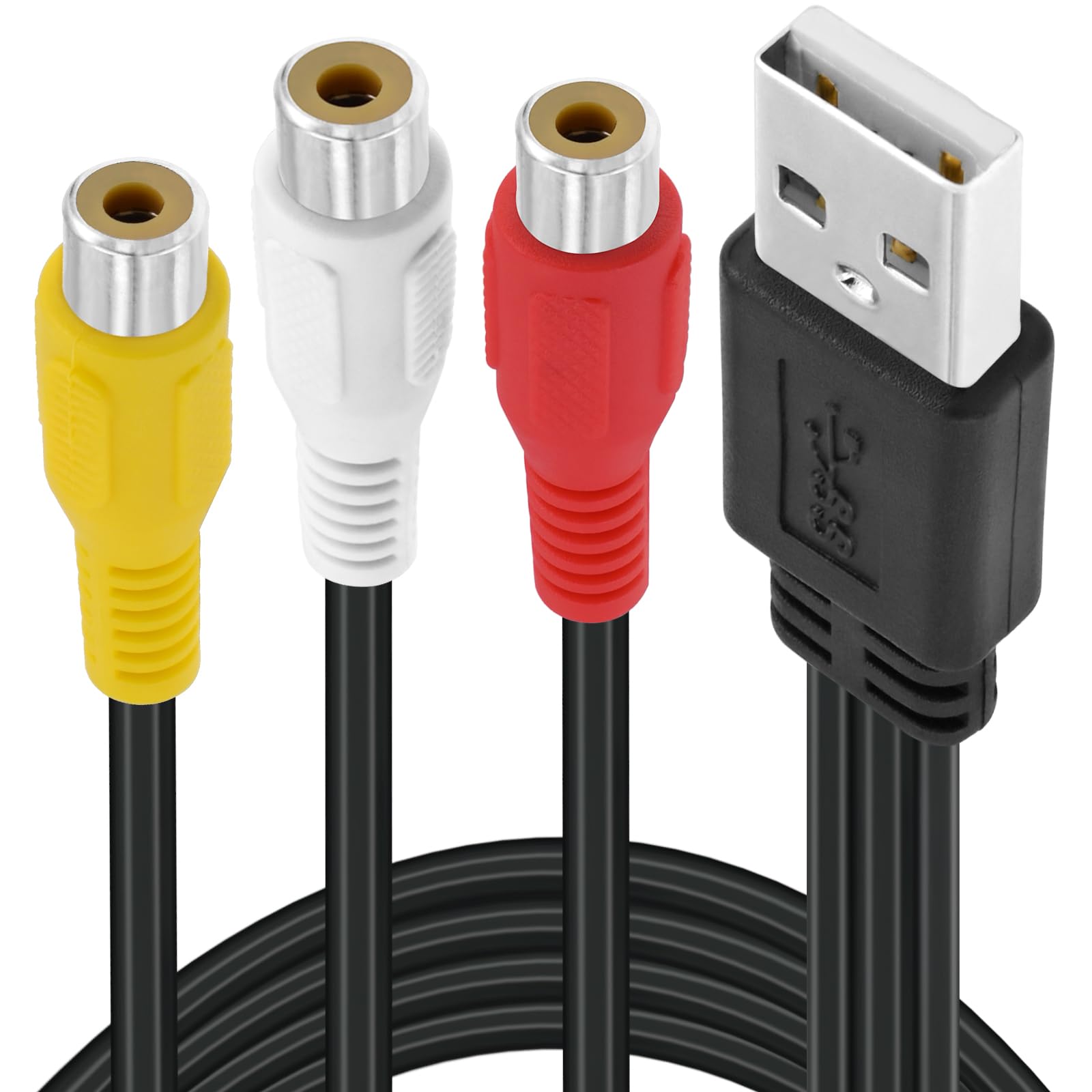 Cable USB a RCA de 5 pies, USB 2.0 A hembra a 3 RCA hembra, cable adaptador AV compuesto para DVD, cámaras digitales, videocámara