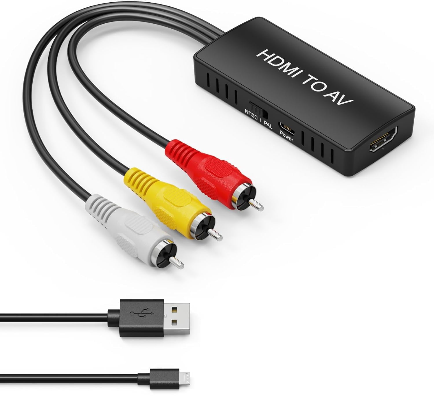 Convertidor HDMI a RCA, HDMI a AV 3RCA CVBs convertidor de audio de vídeo compuesto adaptador para TV antigua compatible PAL/NTSC