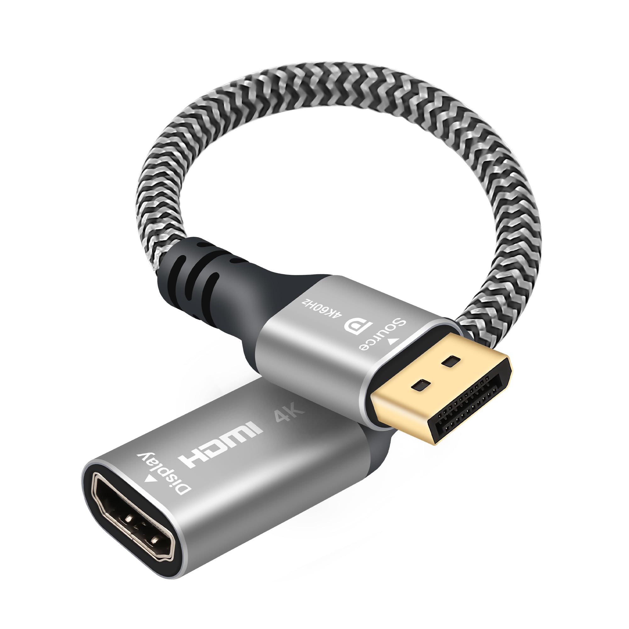 Adaptador DisplayPort a HDMI, adaptador unidireccional DP DisplayPort macho (fuente) a HDMI hembra (pantalla), conector convertido