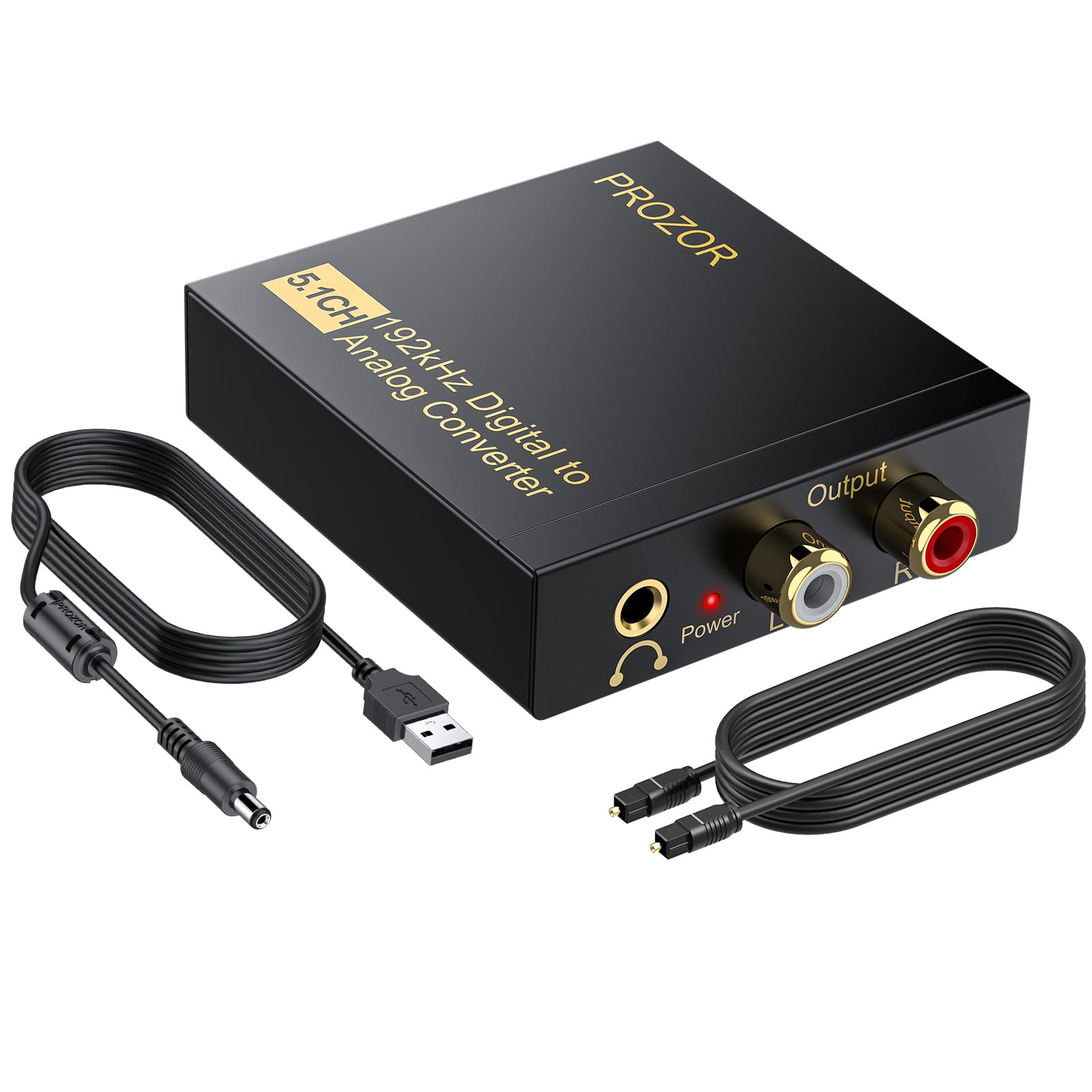 PROZOR Convertidor de audio digital a analógico de 192 Khz compatible con convertidor óptico a RCA de 5.1 canales con anillo magné