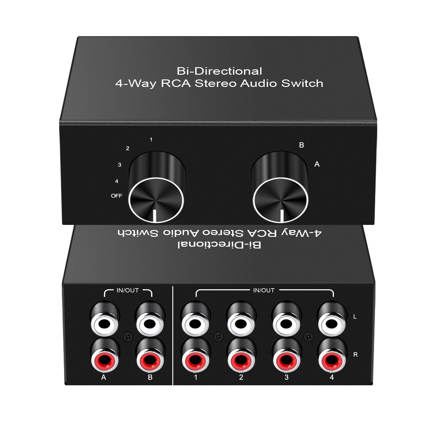 Y.D.F Interruptor RCA bidireccional de 4 vías, canal de sonido HiFi AV L/R, 2 en 4 salidas o 4 en 2 salidas, interruptor de audio