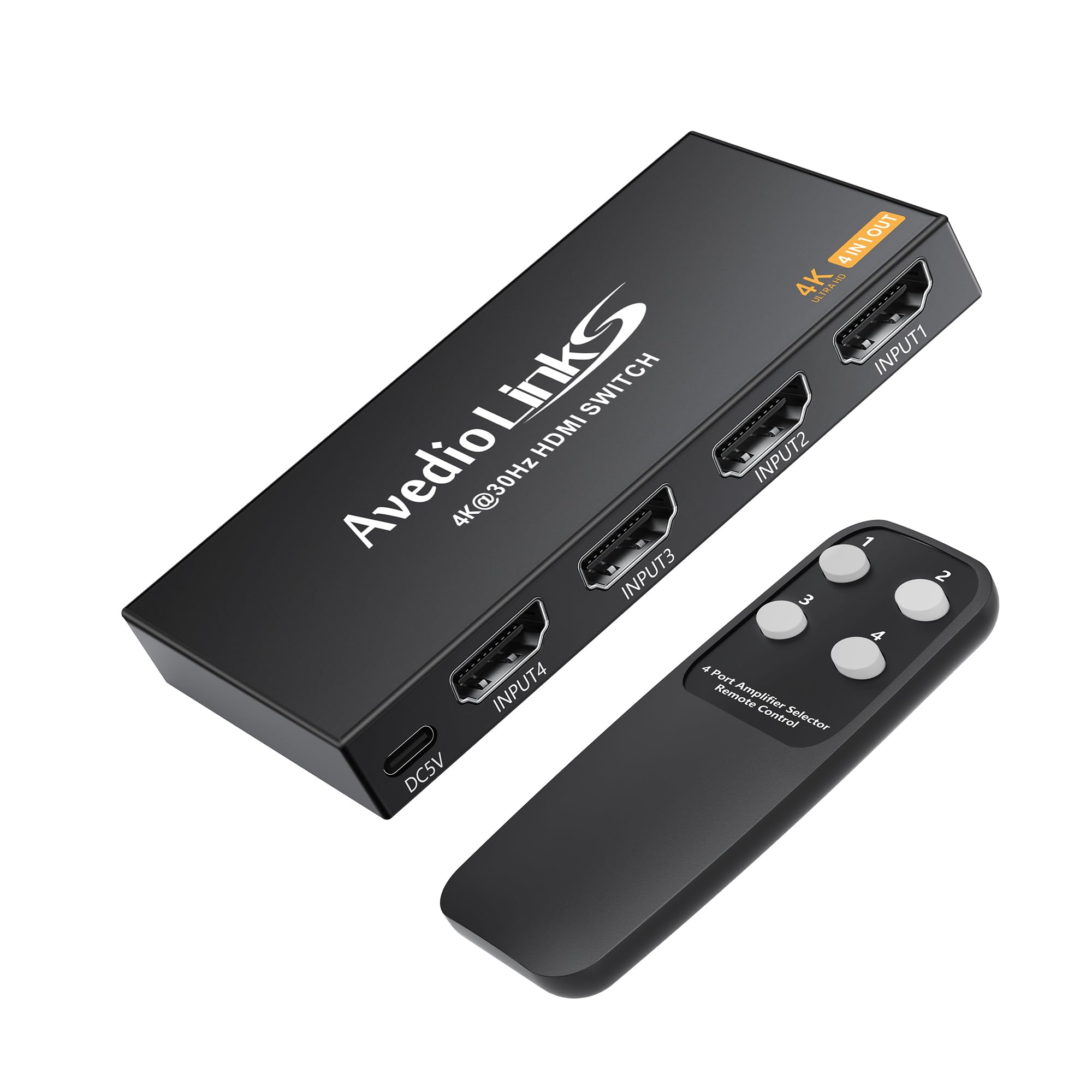Interruptor HDMI 4K 4 en 1 compatible con interruptor automático, conmutador HDMI 4K @30Hz con control remoto, interruptor selecto