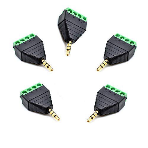 Paquete de 5 conectores de bloque de terminales TRRS macho de 1/8 de pulgada y 0.138 in, conector de audio estéreo de 0.138 in, ad