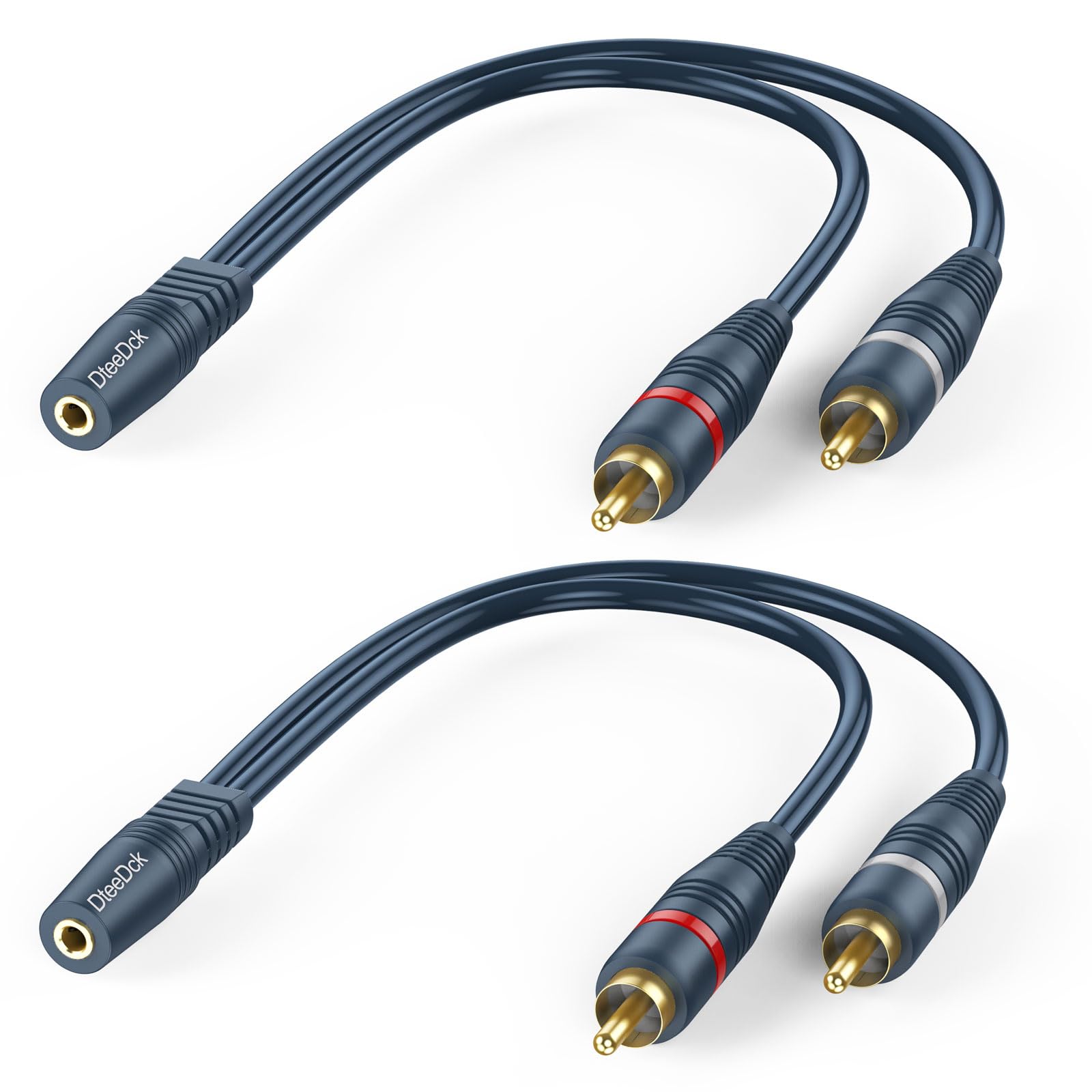 Adaptador divisor de 0.138 in a RCA, chapado en oro, 3 polos, 0.138 in (1/8 pulgadas), audio estéreo macho a 2 RCA hembra AUX Audi