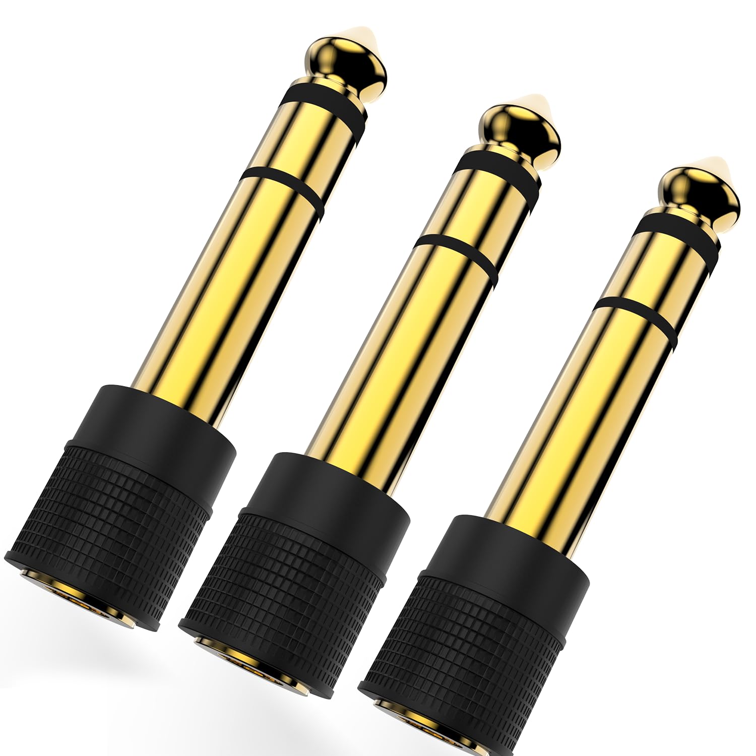 POSUGEAR Adaptador de auriculares estéreo de 0.250 in 1/4 macho a 0.138 in 1/8 hembra chapado en oro, adaptador de conector de aur