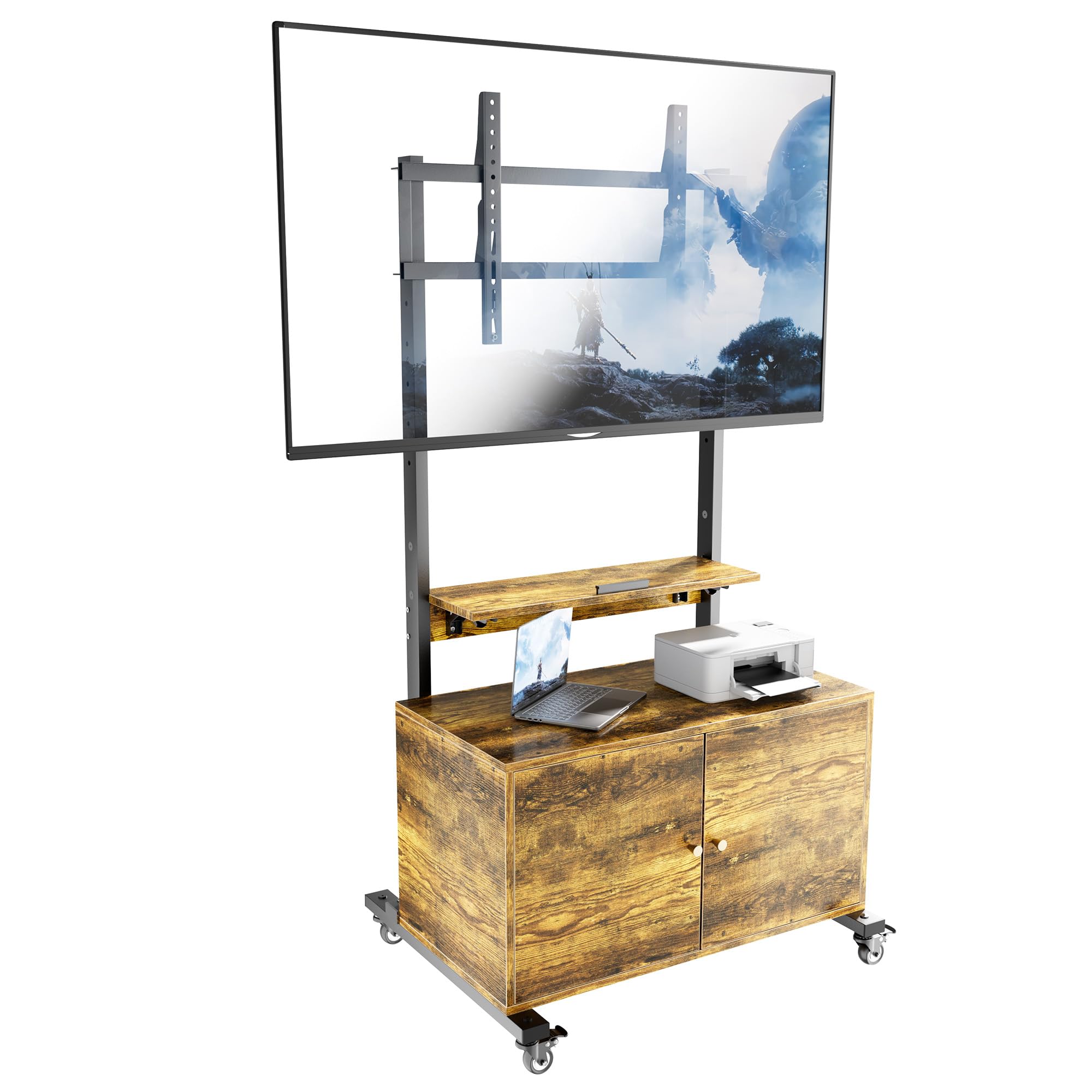 Rollinig – Centro de entretenimiento con armario de almacenamiento, carrito de TV para televisores de 32 a 75 pulgadas de hasta 15