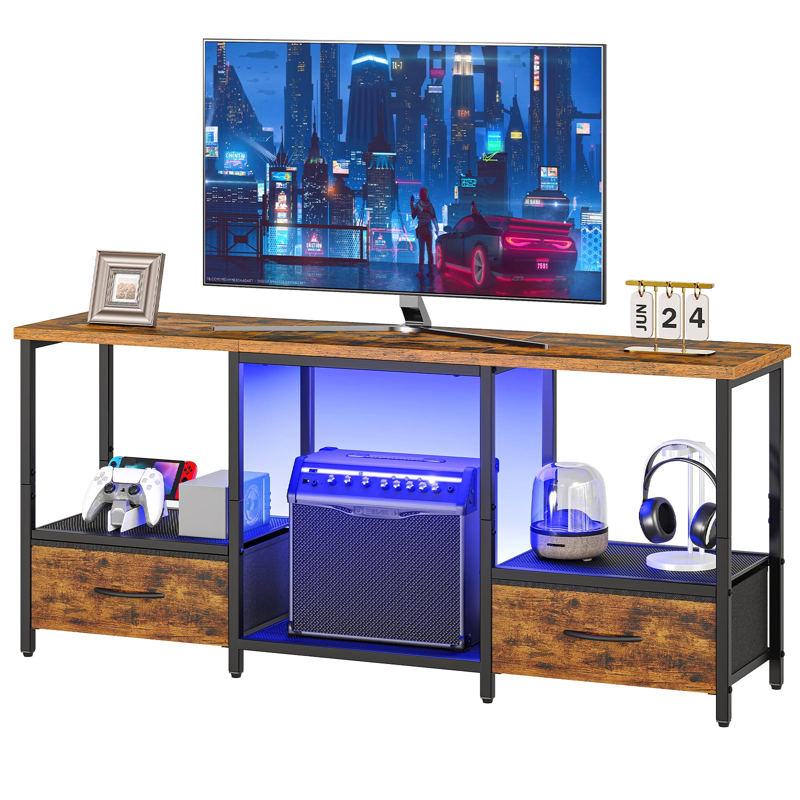 Whitmor Soporte de TV con 5 cajones de tela y estante abierto, mesa consola multimedia para TV de 45 pulgadas, gabinete central de