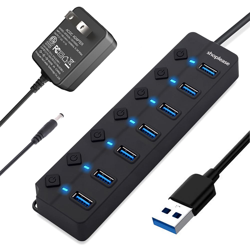 Divisor USB 3.0, concentrador USB 3.0 de 7 puertos con interruptores y luces individuales, concentrador de datos de expansión port