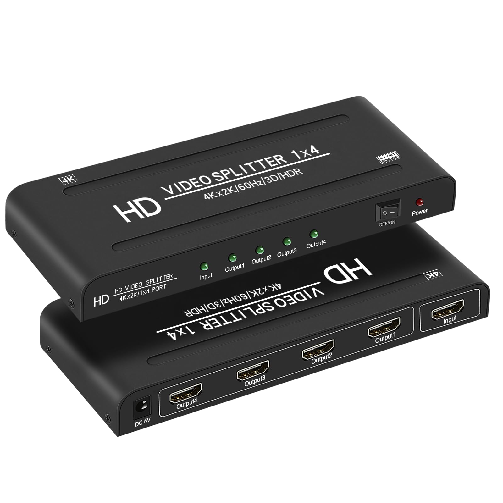Divisor HDMI 4K @60Hz 1×4 1 en 4 salidas, 4: 4: 4, 18 Gbps, 4 puertos alimentados HDMI 2.0 Splitter compatible con escalador autom