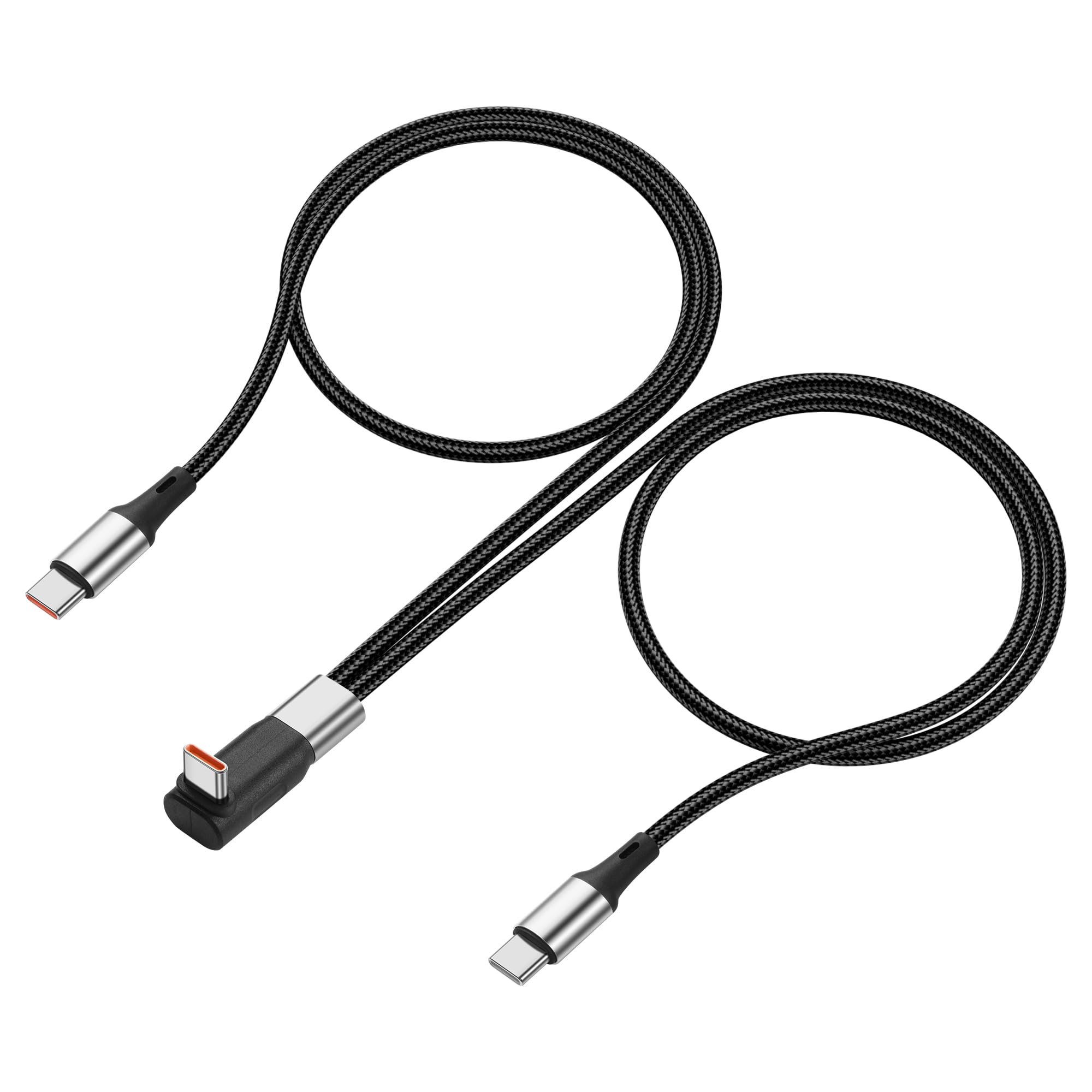 Cable de carga USB 2 en 1 en ángulo recto USB C a doble tipo C, cable de carga rápida 6A UB tipo C, cable de carga múltiple para a