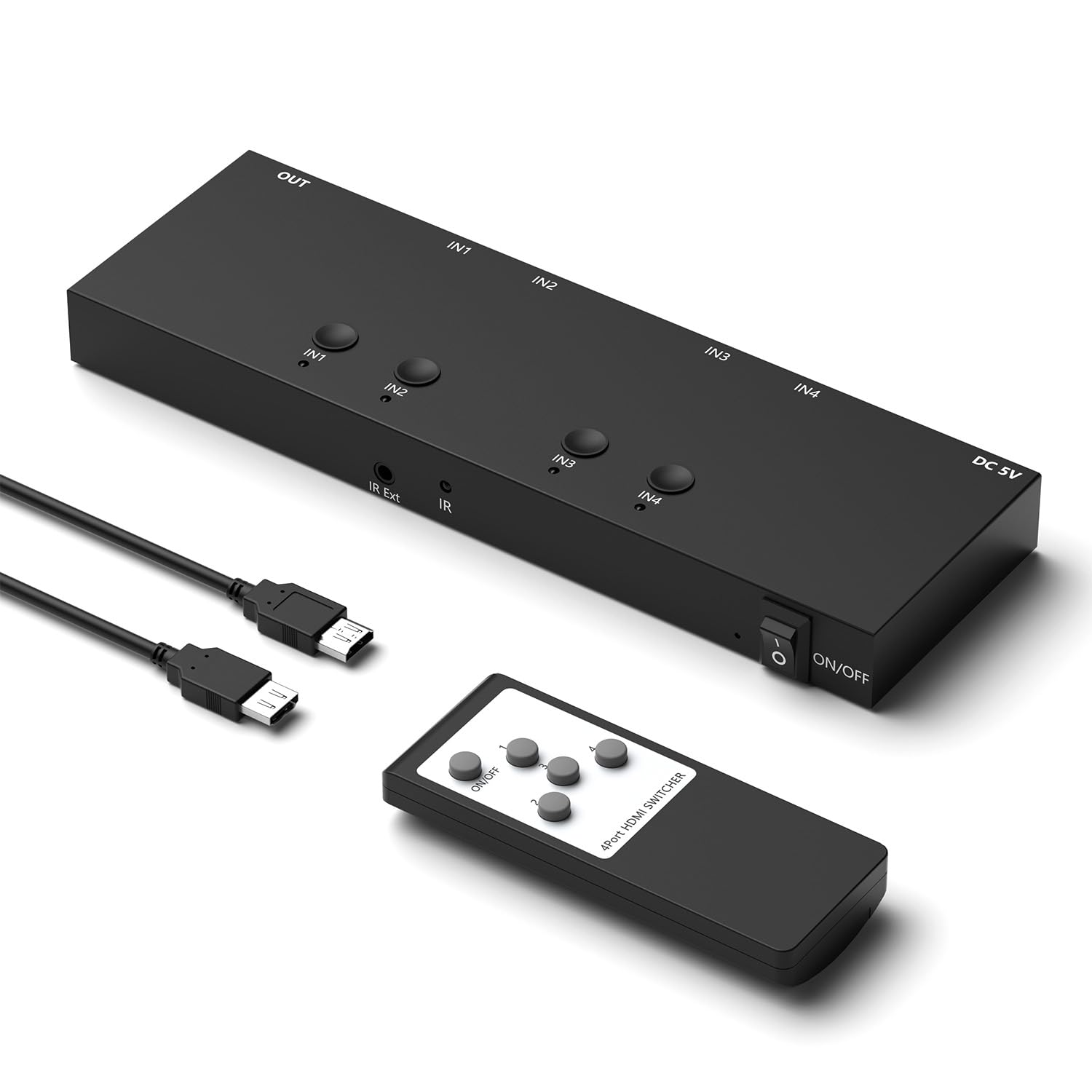 Y.D.F Interruptor HDMI de 4 vías 4 k@60 Hz, conmutador HDMI 4 en 1 salida HDCP 2.0 manual HDMI 2.0 Hub compatible con 3D compatibl