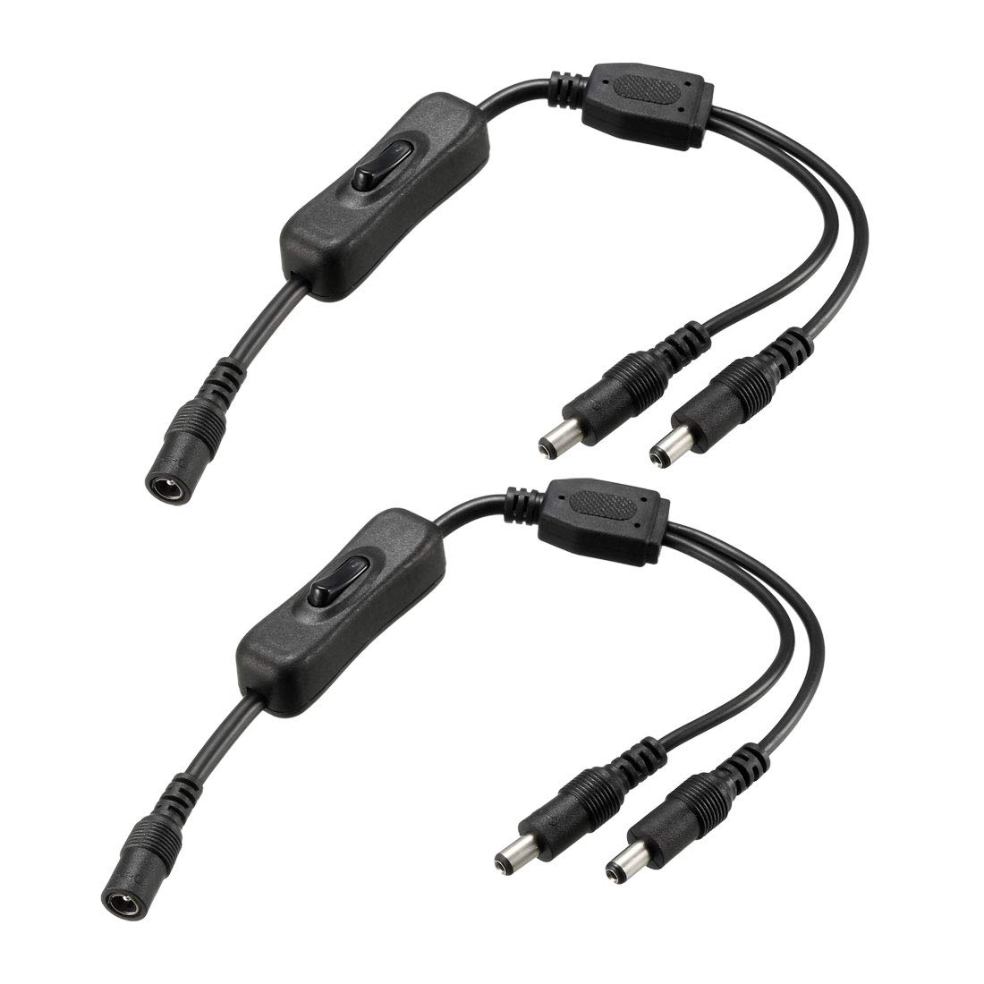 uxcell Divisor de corriente CC con interruptor 1 hembra a 2 machos 0.217 in x 0.083 in Cable adaptador Y para cámara CCTV LED tira