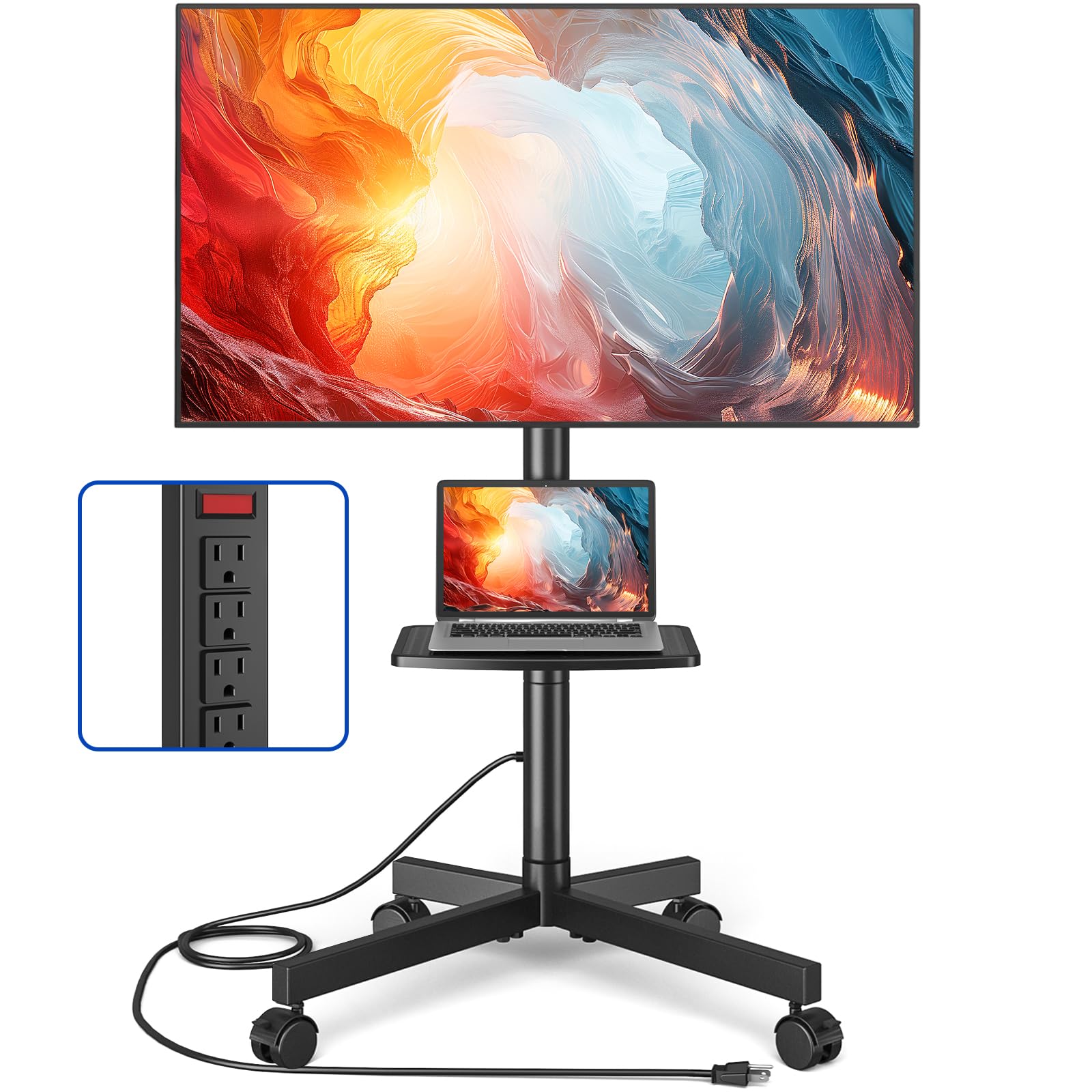Soporte de TV rodante con toma de corriente, carritos de TV móviles para televisores de 23-55 de 60 pulgadas, pantalla curva/plana