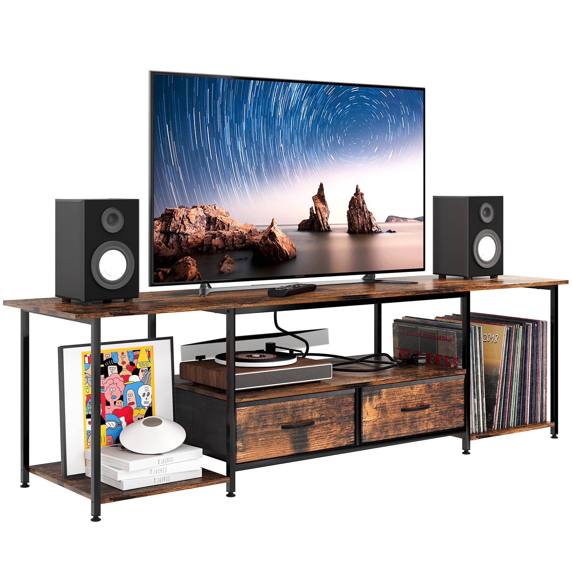 TQVAI Soporte de TV de 70 pulgadas, centro de entretenimiento de granja con cajones de tela, estación de carga y almacenamiento, m
