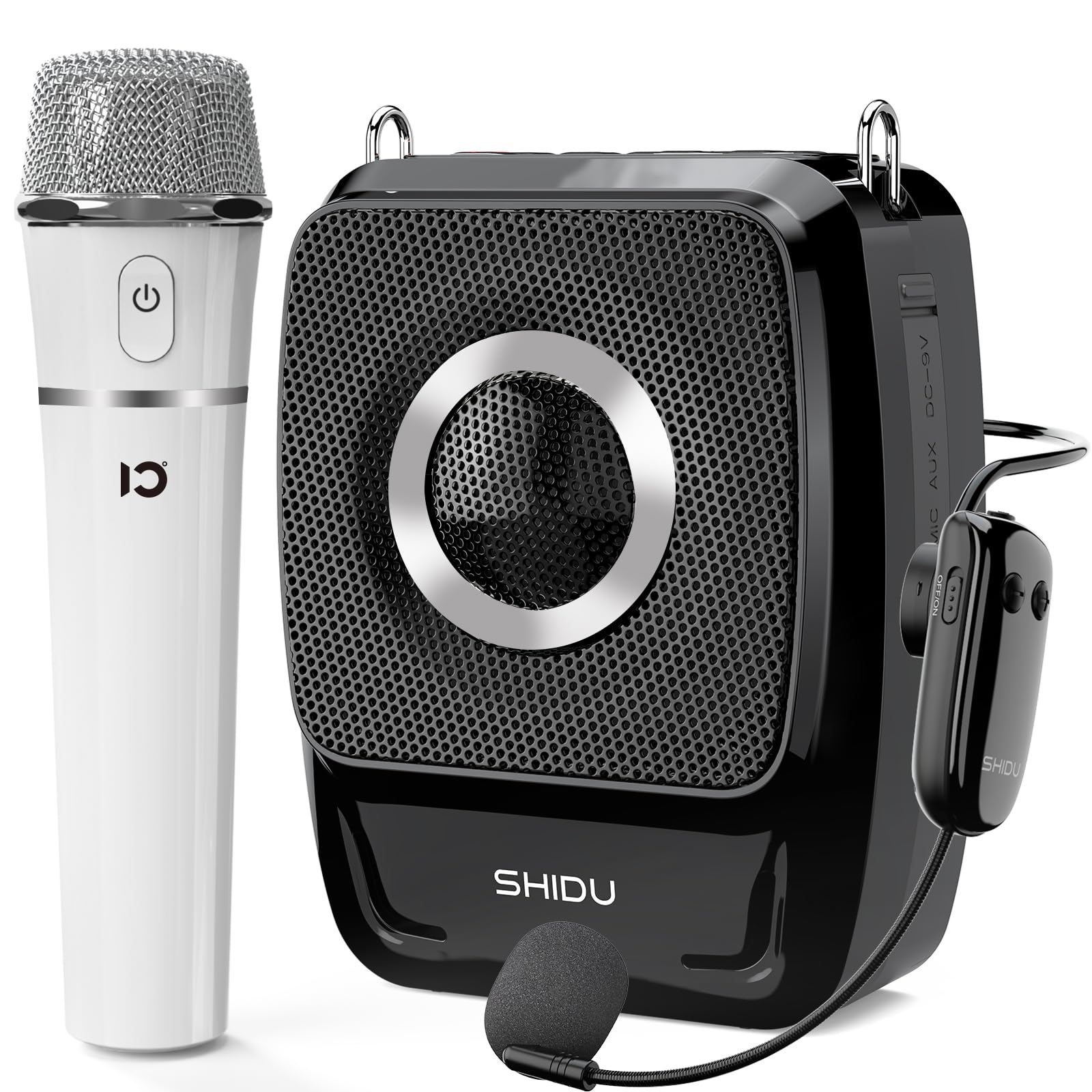 SHIDU Amplificador de voz de 35 W con micrófono inalámbrico (de mano y auriculares), megáfono portátil Bluetooth para profesores,