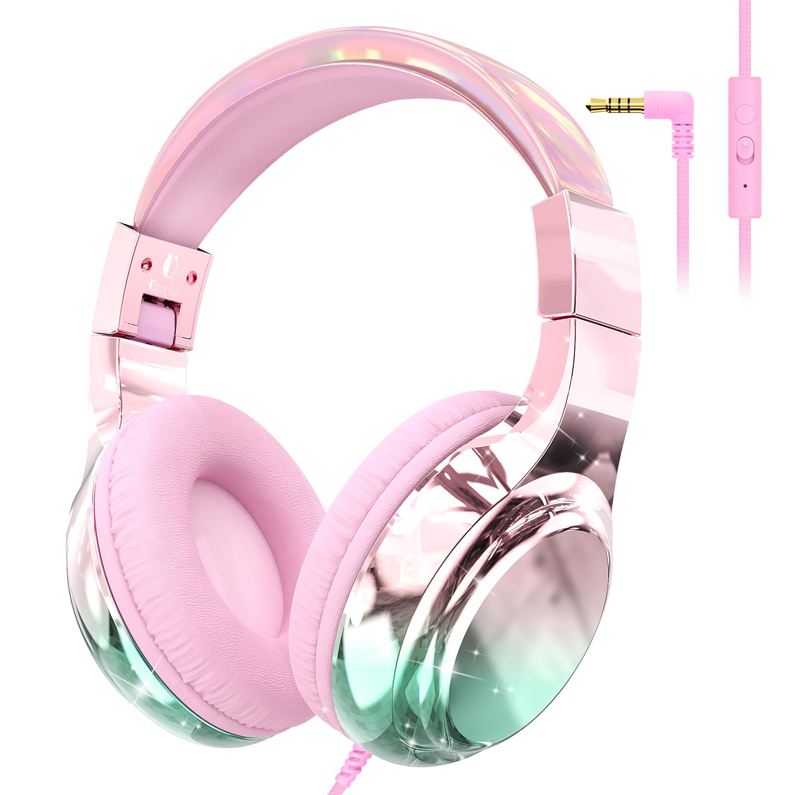 QearFun Auriculares para niños con cable con límite de volumen de 85/94 dB, auriculares plegables con micrófono y puerto para comp