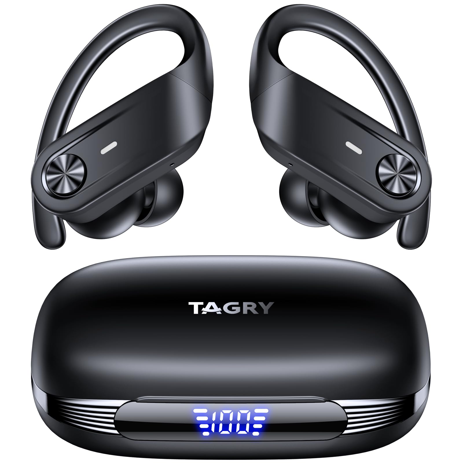 TAGRY Auriculares inalámbricos Bluetooth 80 horas de reproducción IPX7, pantalla digital impermeable, auriculares deportivos con g