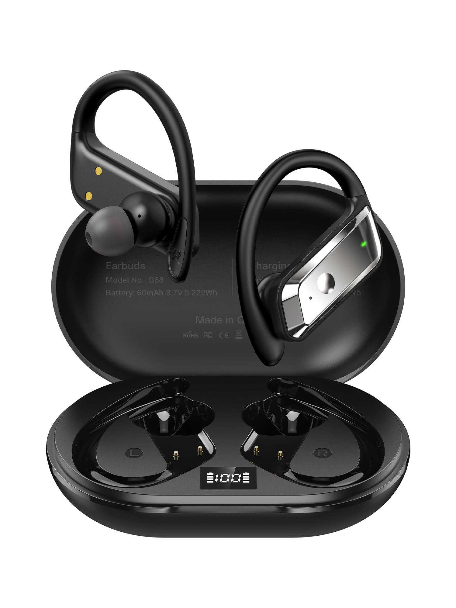 Auriculares de oreja abierta, Bluetooth 5.3 inalámbricos de conducción de aire con micrófono, pantalla LED de carga y carga rápida