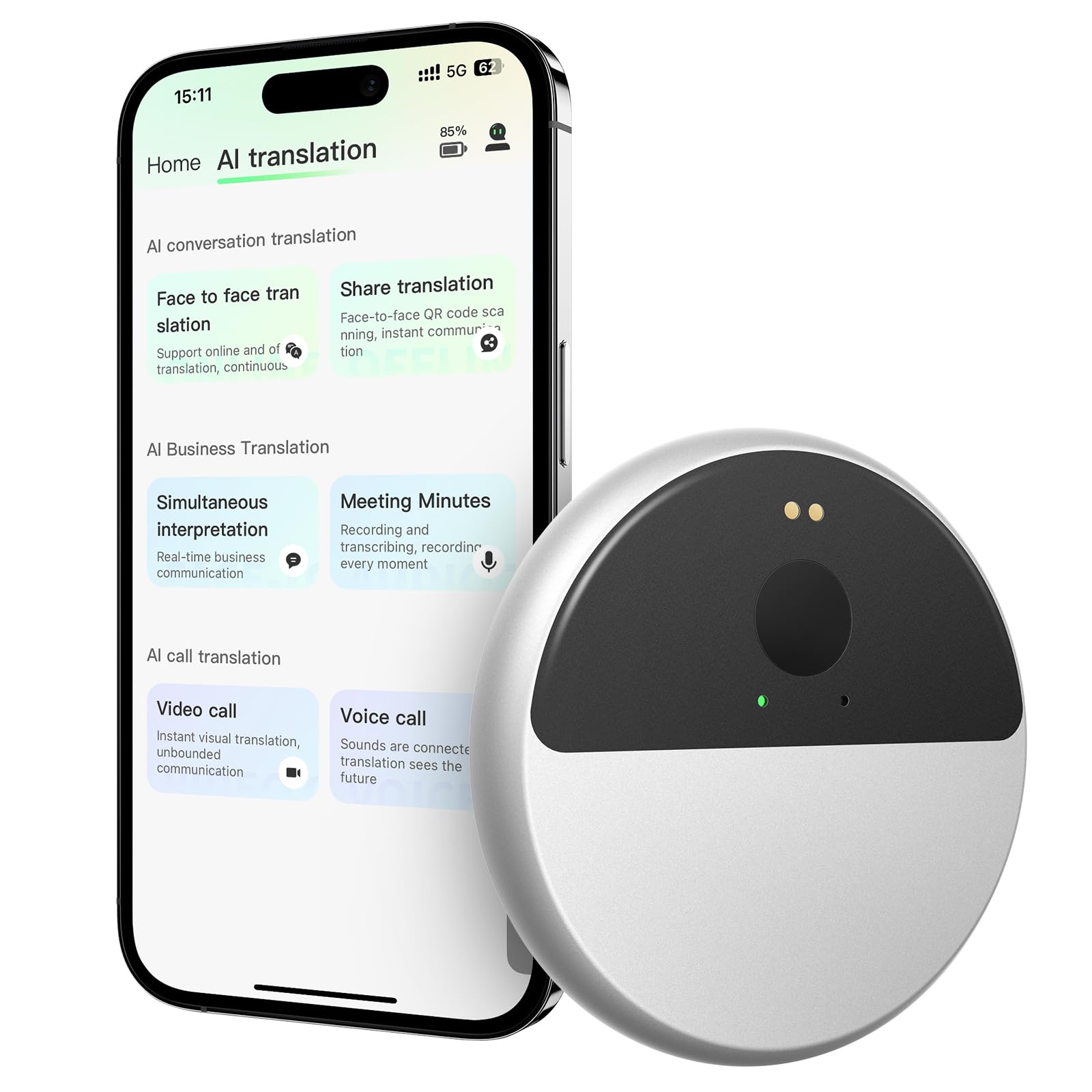 Auriculares con traductor de idiomas en tiempo real AI, traductor de idiomas AI, acentos 3 en 1 y auriculares de traducción de bat