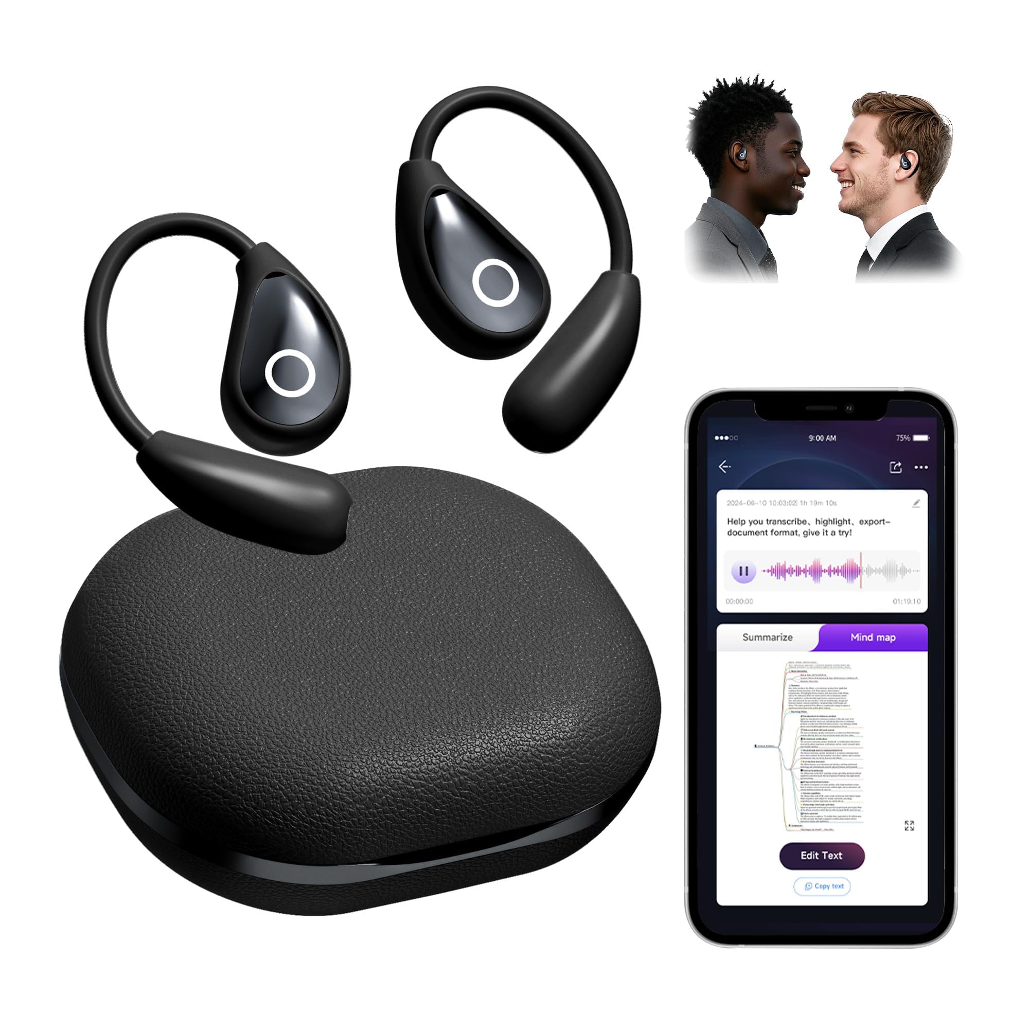 Auriculares de traducción AI en tiempo real, 3 en 1, 144 idiomas y acentos, auriculares inalámbricos Bluetooth 5.3 de oreja abiert