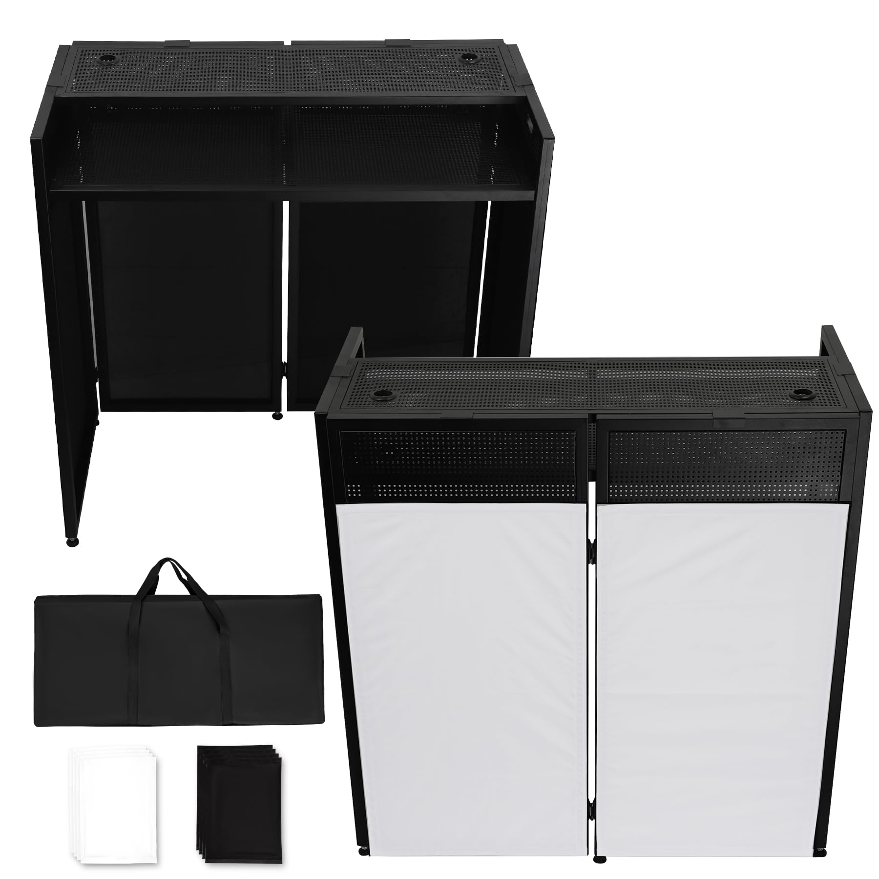 Estación de mesa para cabina de DJ con escritorio doble superior, cabina de fachada de DJ con Scrims en blanco y negro, mesa de DJ