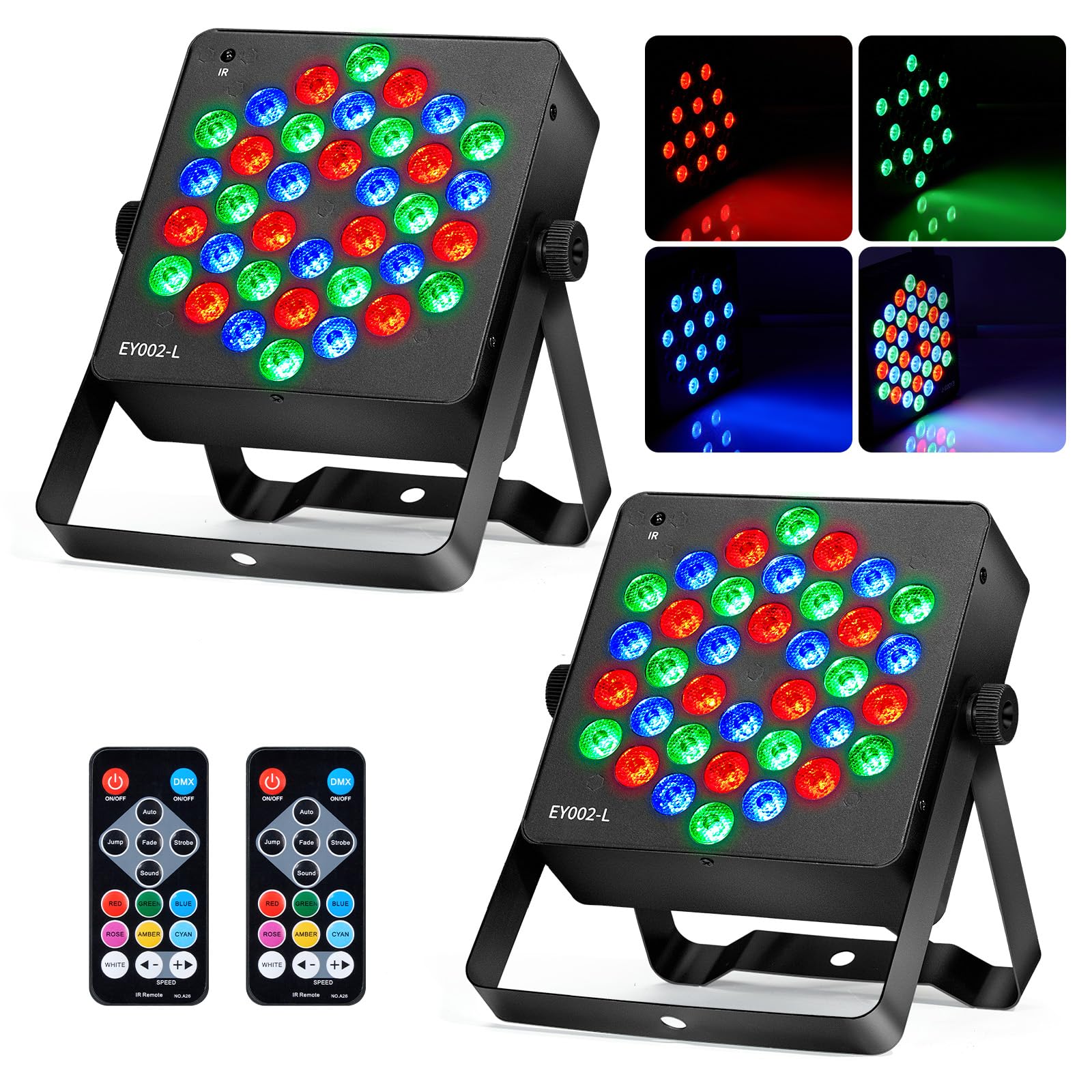 Luces LED Par de 36 luces LED para escenario, 7 modos, luces RGB para DJ con control remoto activado por sonido, luces de DJ para