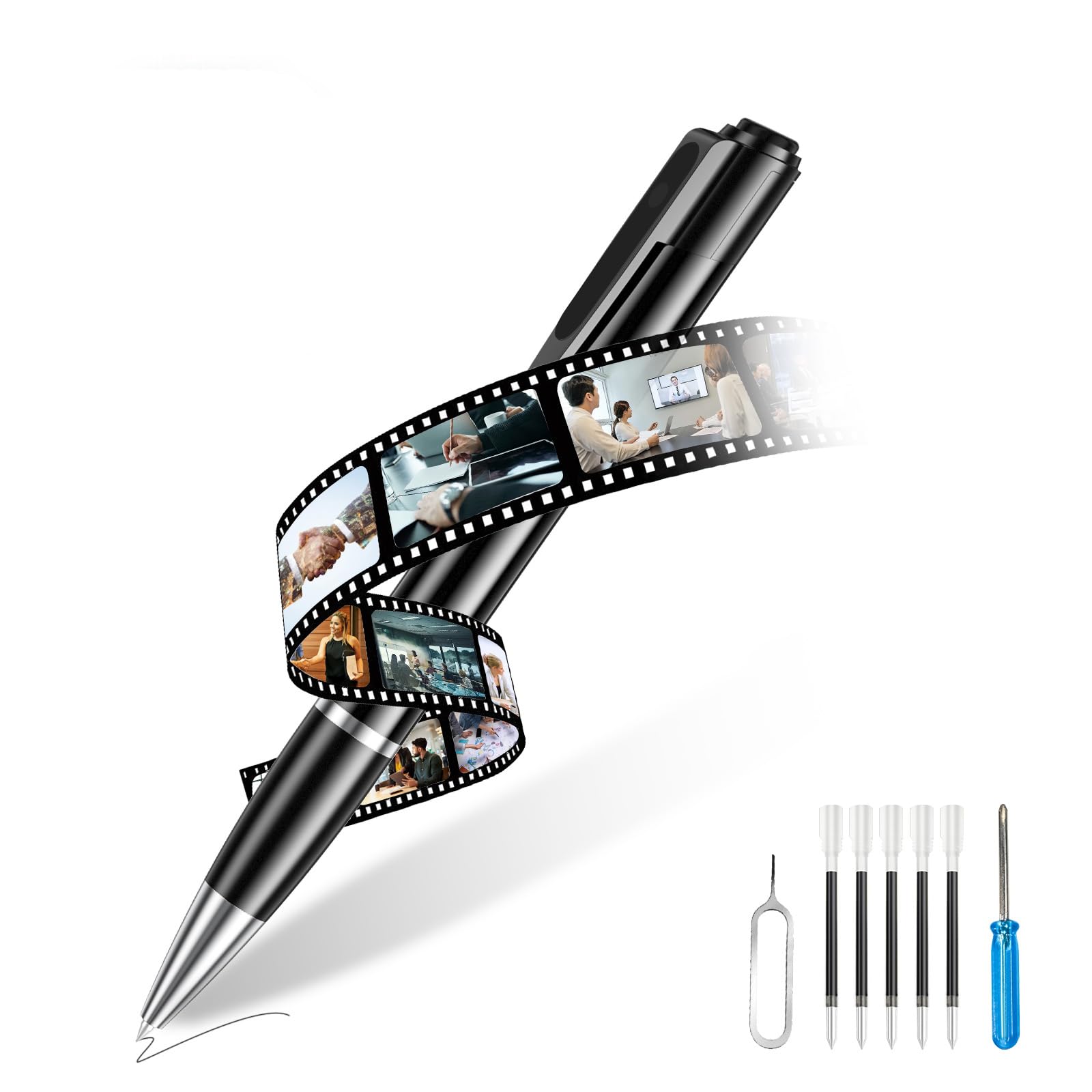Bolígrafo de cámara oculta, mini cámara secreta con memoria integrada de 64 GB, cámara grabadora de video HD para reuniones en int
