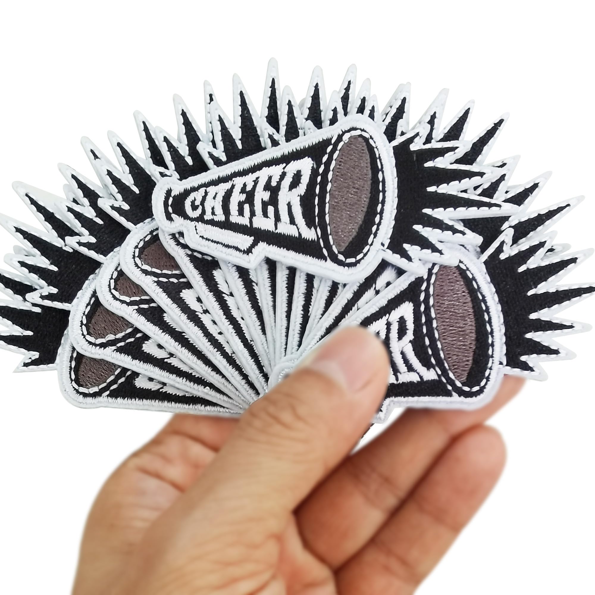 Venta al por mayor Conjunto de 12 porristas animadoras megáfono día de juego en blanco y negro Parche de equipo Bullhorn Patch Jue