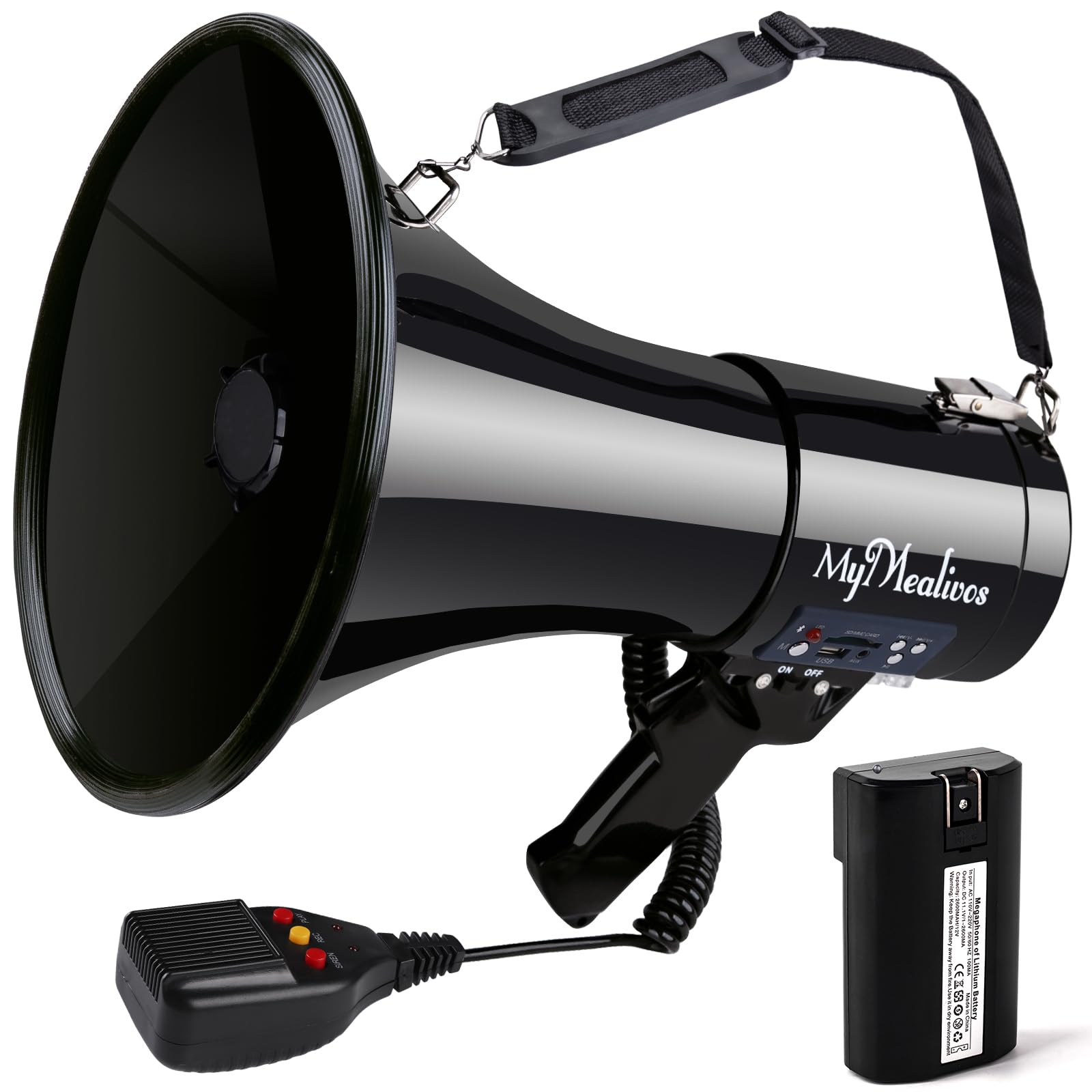 MyMealivos Megaphone with Siren Bullhorn 50 Watt Bullhorn Speaker with Detachable Microphone, Portable Lightweight Strap & 3.5mm A