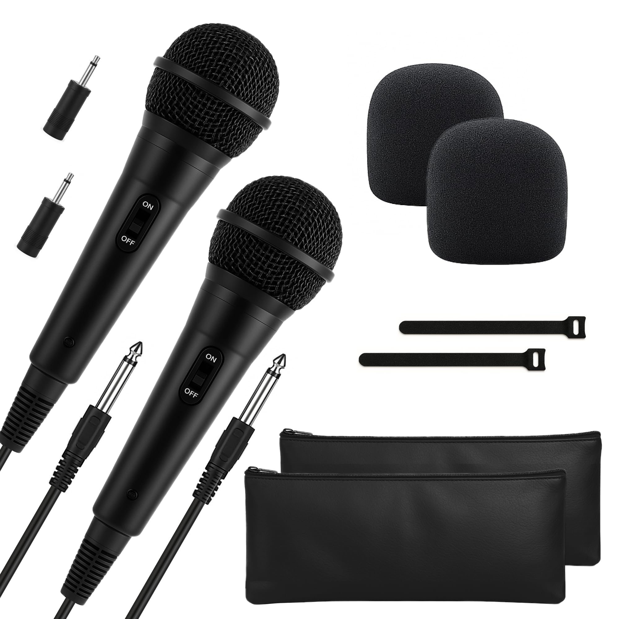 Bowens Micrófono con cable para cantar, paquete de 2 micrófonos cardioides dinámicos con cable de 15 pies y adaptador de 1/4 a 0.1