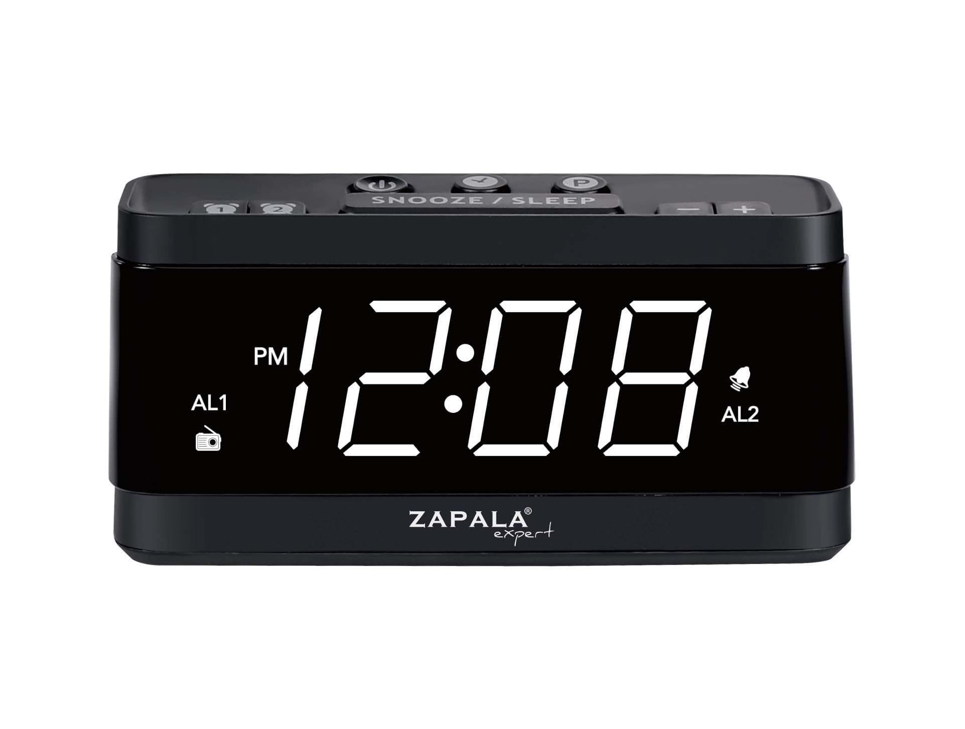 Radio despertador, 2 alarmas, pantalla LED grande, radio digital FM con puerto de carga USB, volumen ajustable y atenuador, repeti