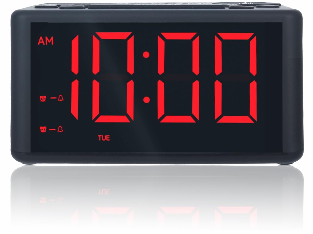 Radio despertador digital para dormitorio con AM/FM, pantalla LED grande, preajustes, alarma dual, día de semana, alarma de fin de